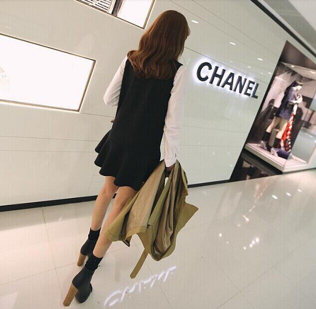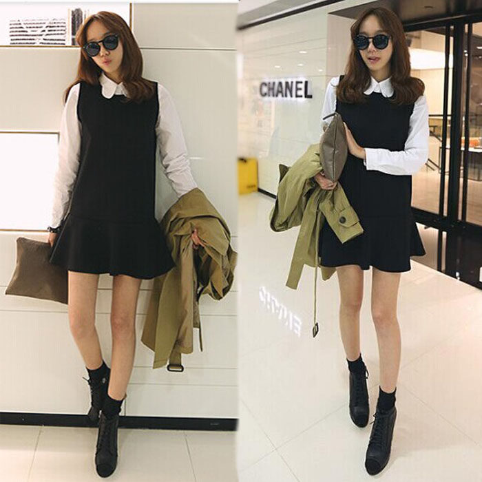 Жилет, милая юбка, платье, 2020, в корейском стиле, А-силуэт, свободный крой, большой размер