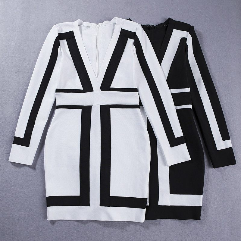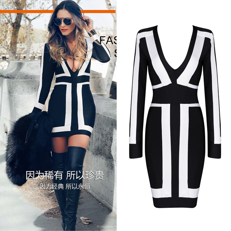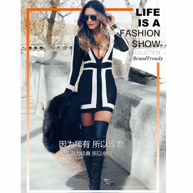 Осеннее платье, лонгслив, европейский стиль, V-образный вырез, облегающий крой