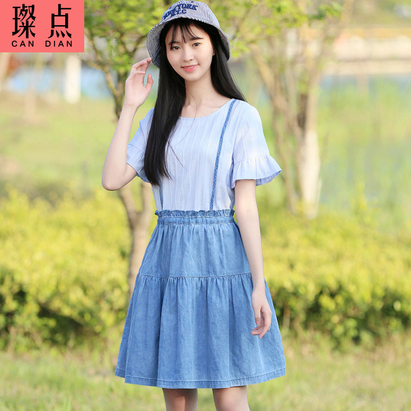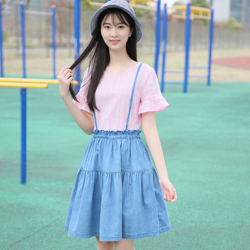 Свежее длинное милое платье, хлопковый мегафон для школьников, юбка, короткий рукав, длина миди, 2020, подходит для студента