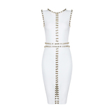 Летняя модная эластичная повязка с круглым воротником без рукавов, платье, облегающий крой, с акцентом на бедрах