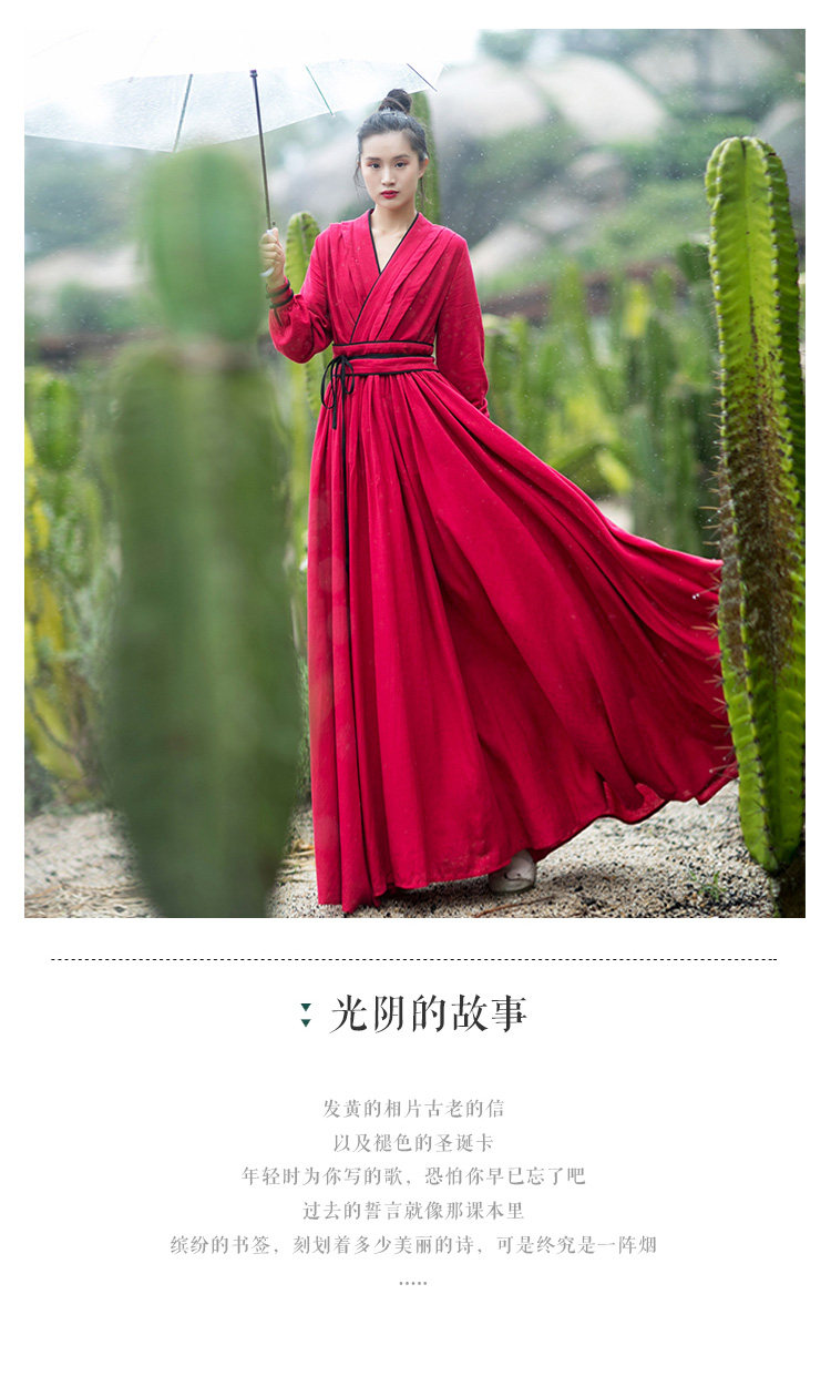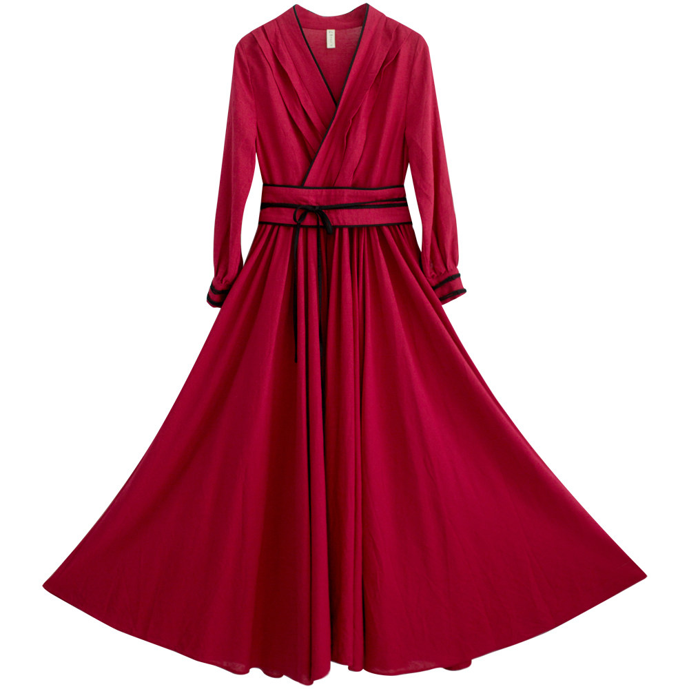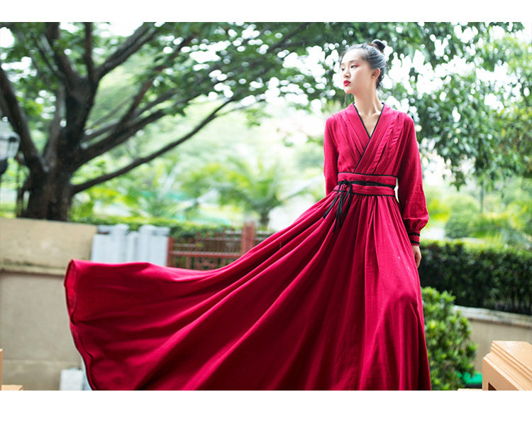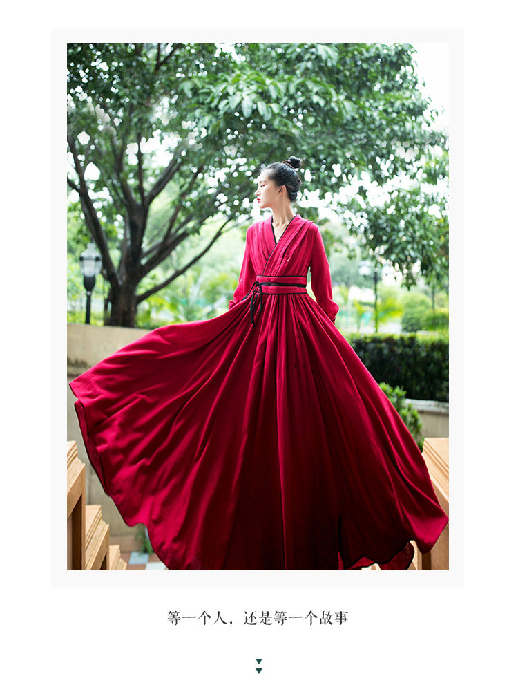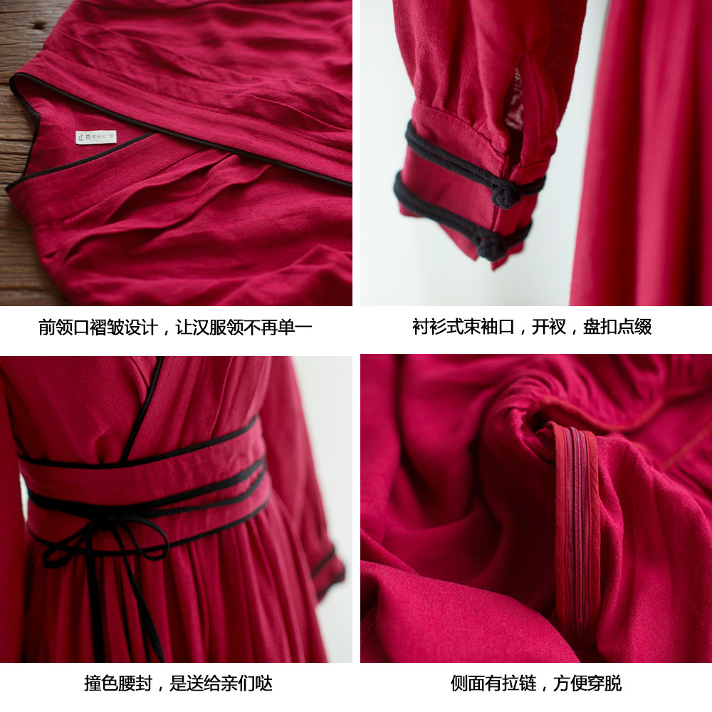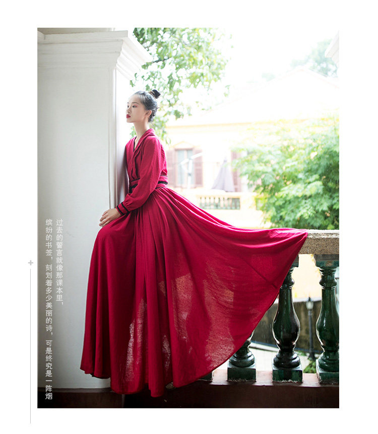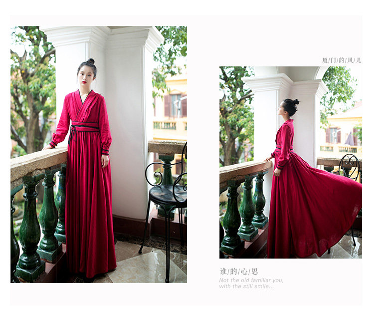 Ханьфу, длинная юбка, осеннее платье, лонгслив, из хлопка и льна, 2021 года