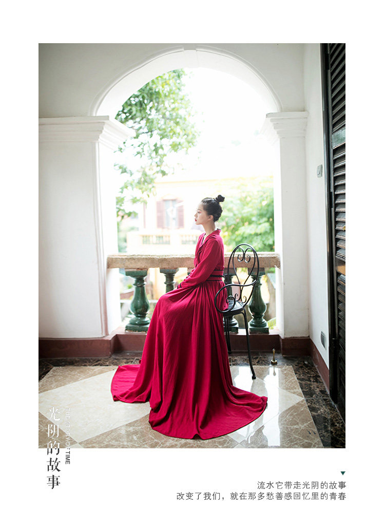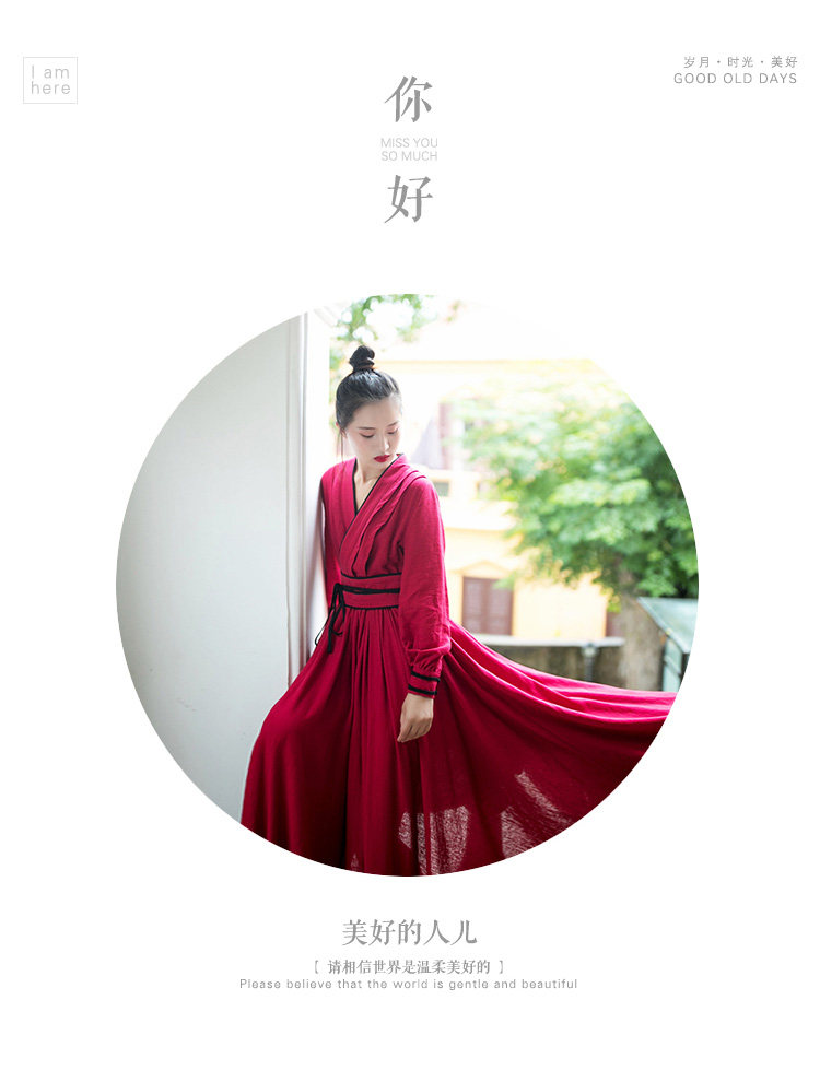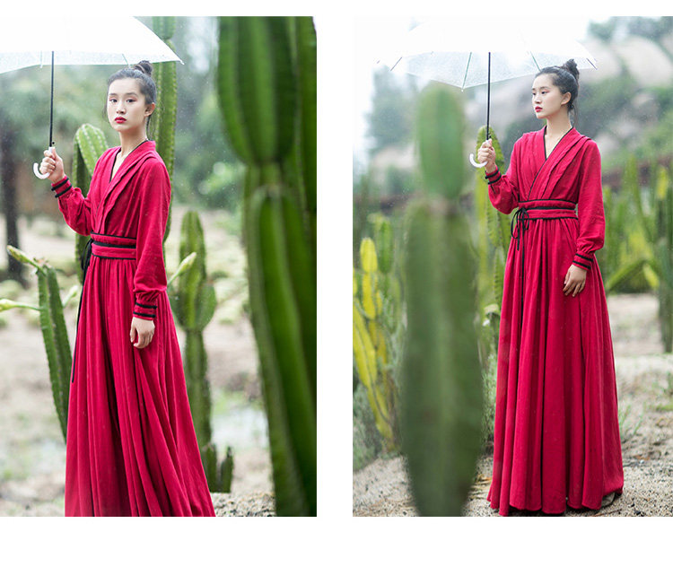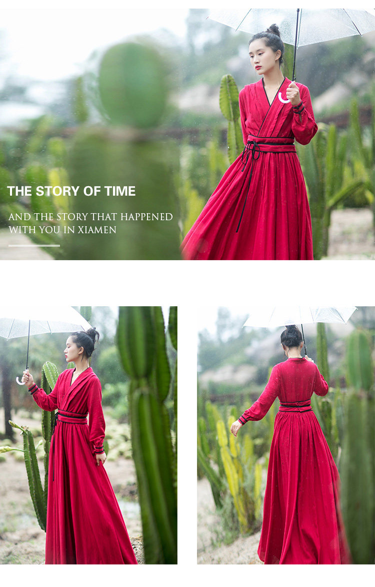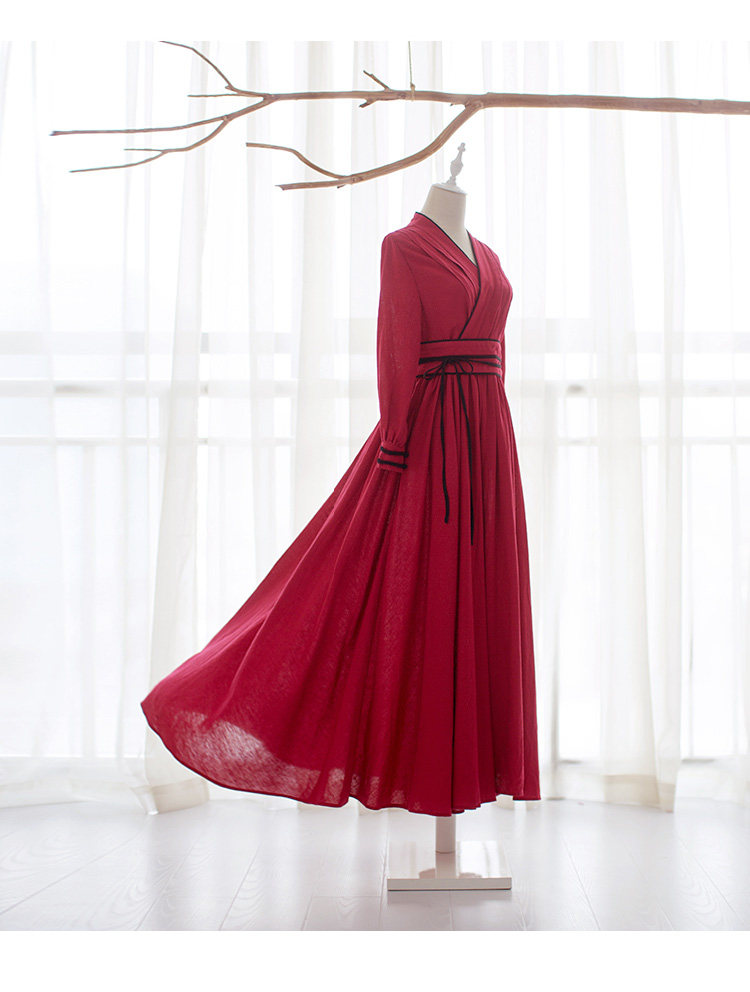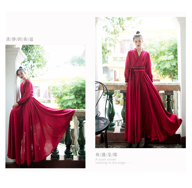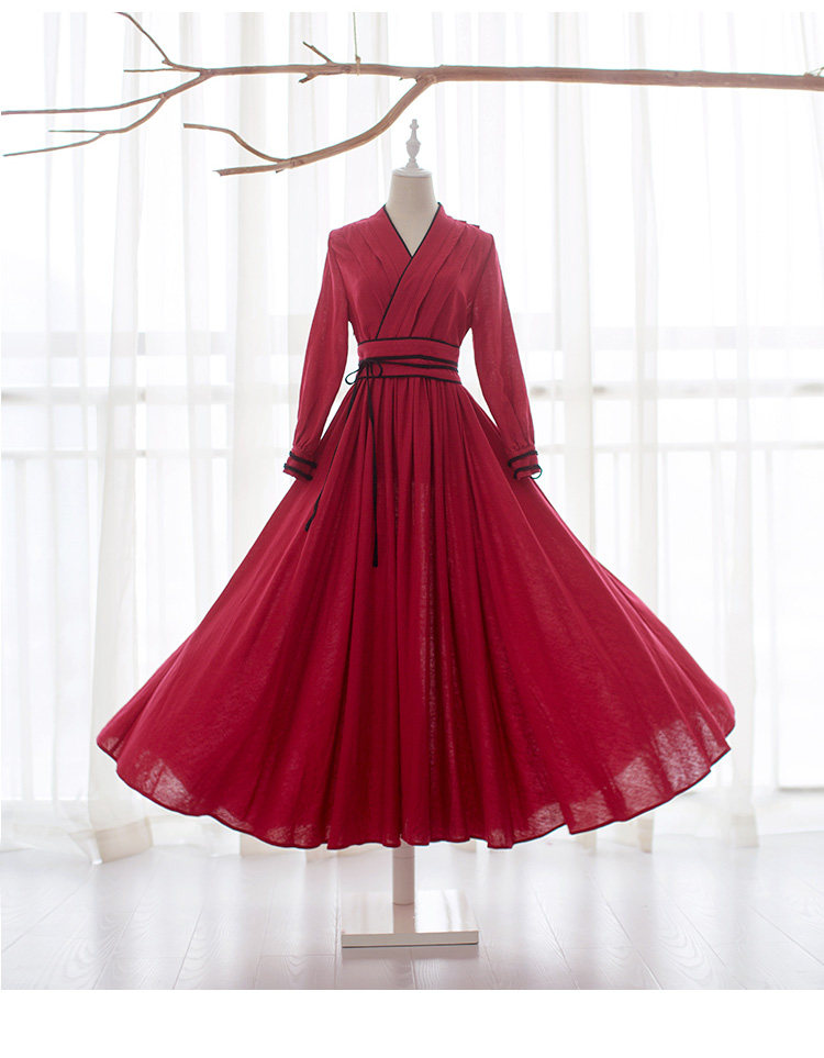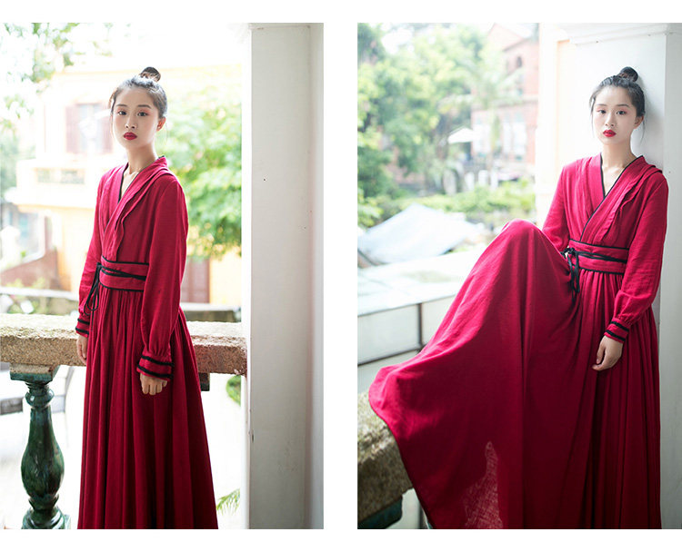 Ханьфу, длинная юбка, осеннее платье, лонгслив, из хлопка и льна, 2021 года
