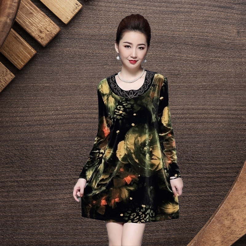 Демисезонное бархатное длинное платье для матери, большой размер, в западном стиле, свободный крой, средней длины