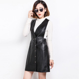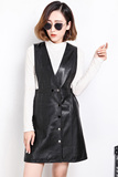 Демисезонная универсальная юбка, длинное платье, из натуральной кожи, средней длины, с акцентом на бедрах