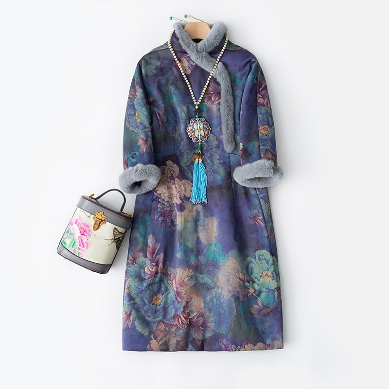 Демисезонное шелковое ципао, ретро платье, китайский стиль