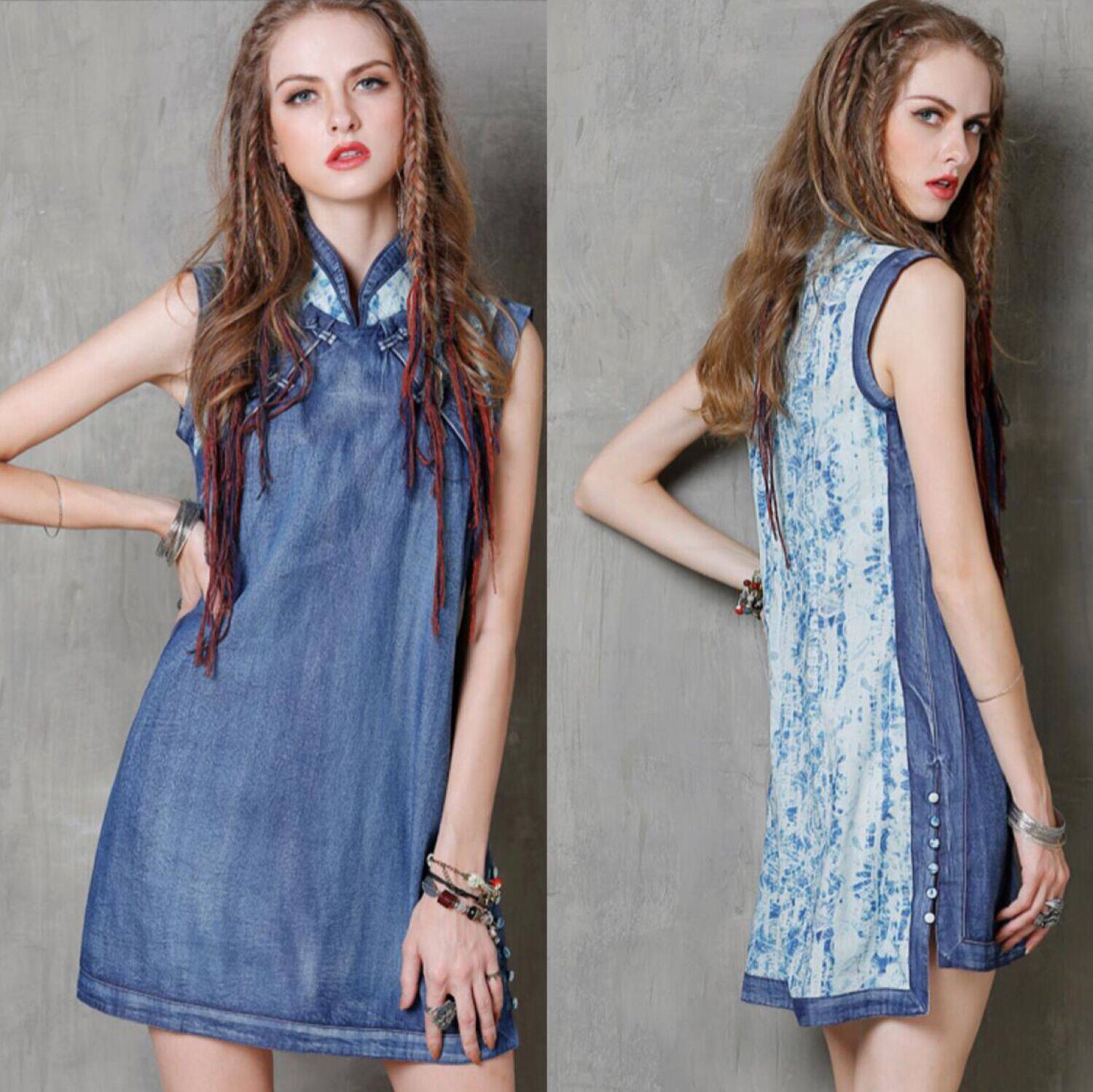 Летнее ретро платье, тонкое джинсовое ципао для отдыха, сезон 2021