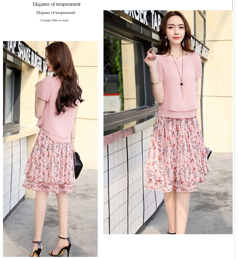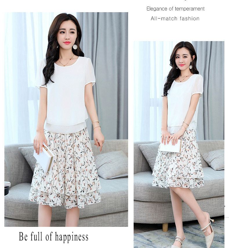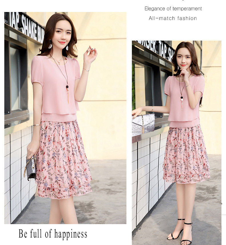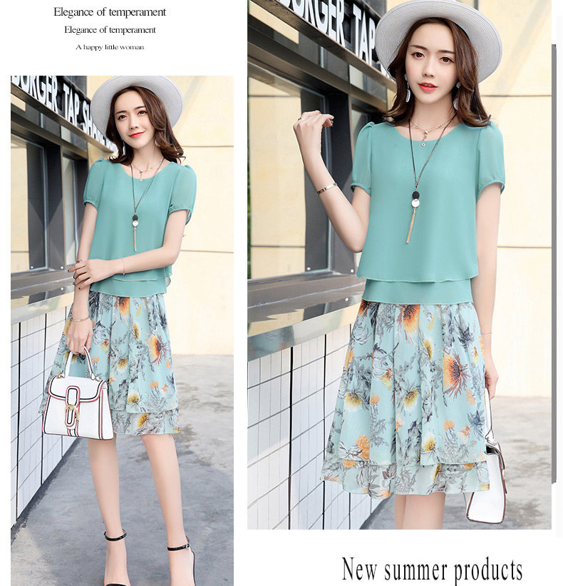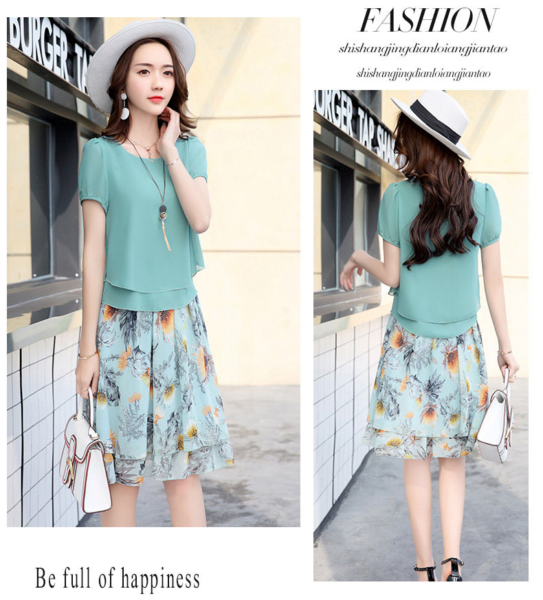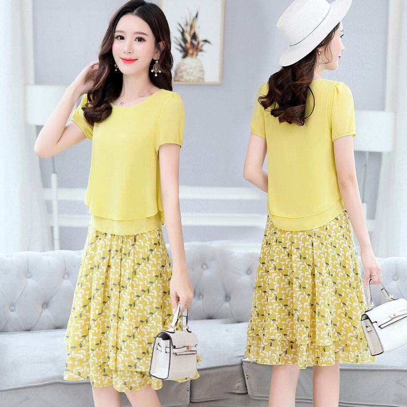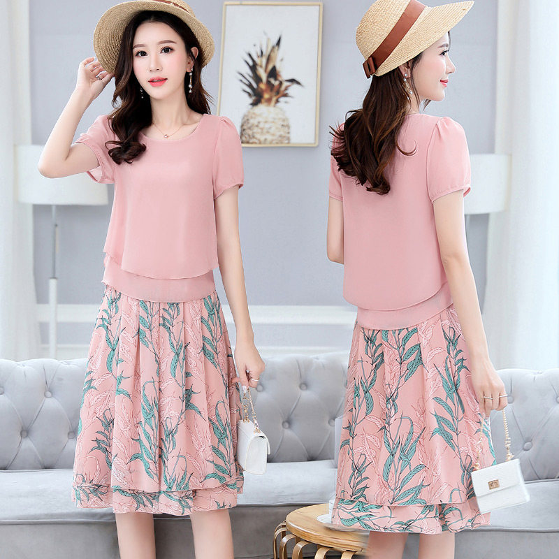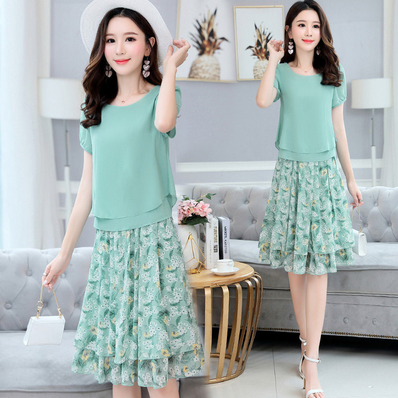 Летний модный комплект, свежая юбка, шифоновое платье, в корейском стиле, по фигуре