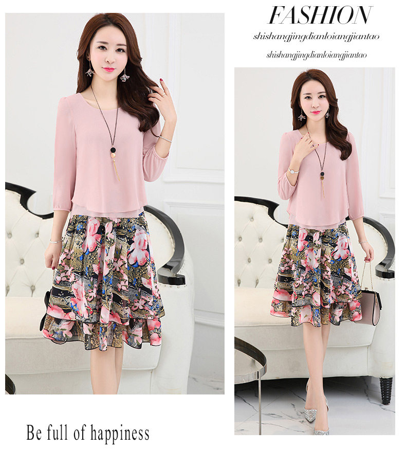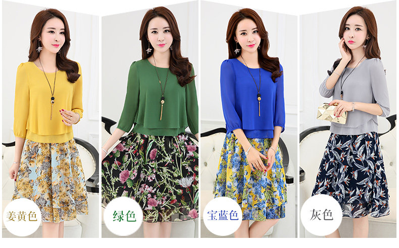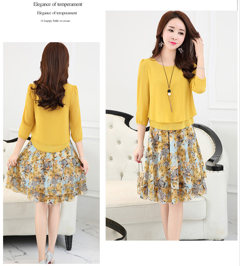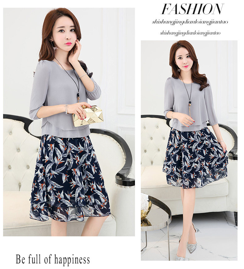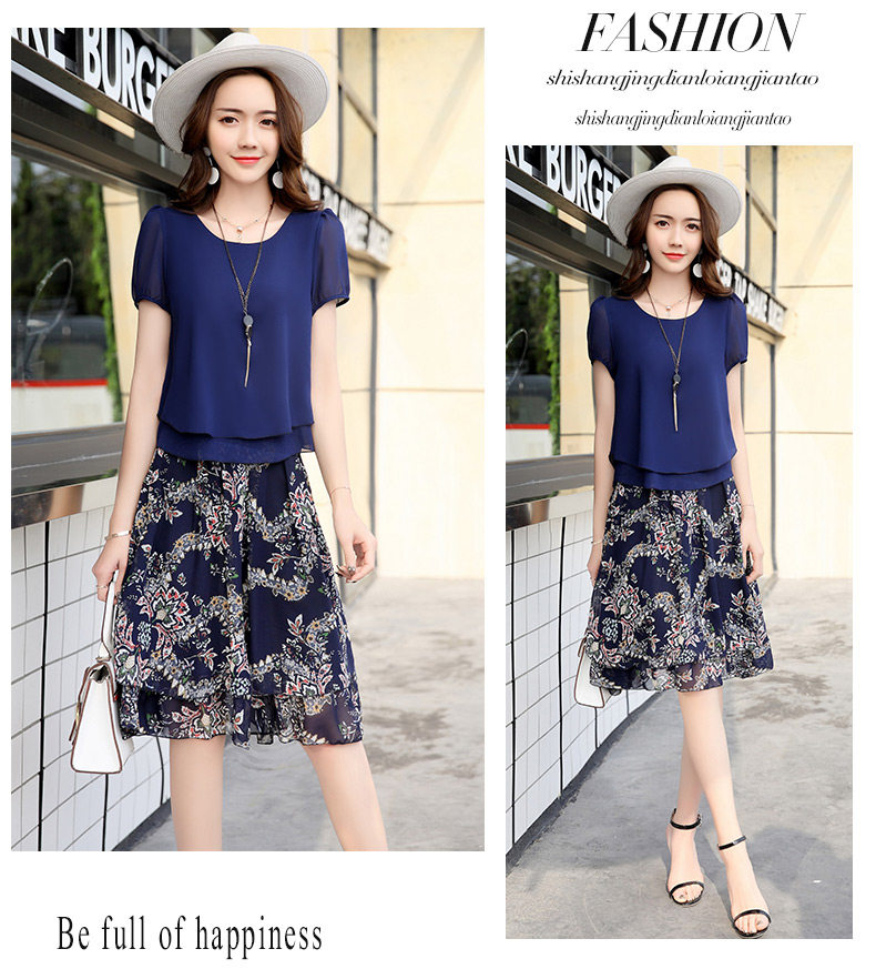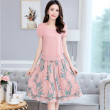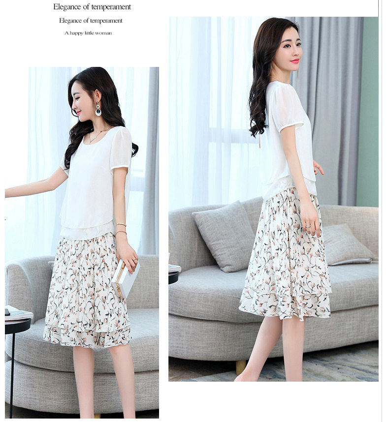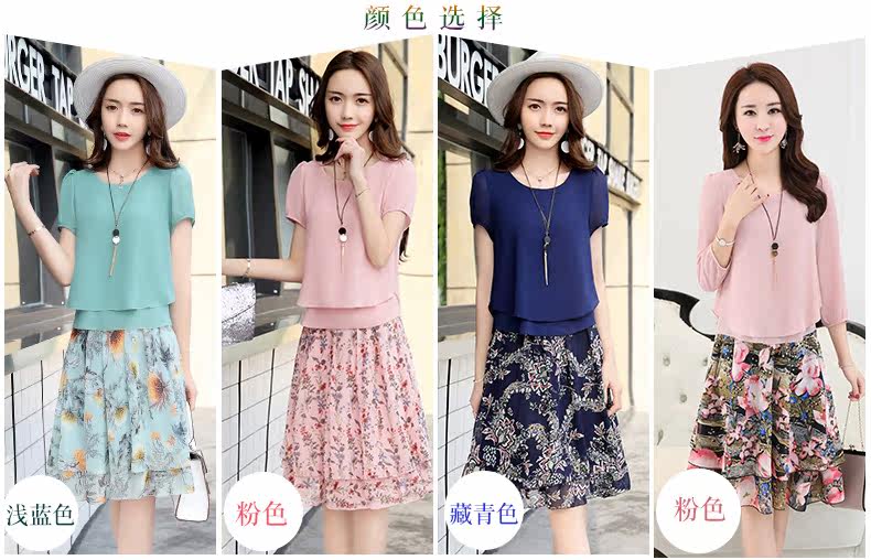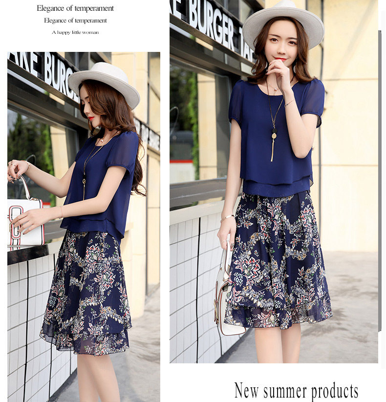 Летний модный комплект, свежая юбка, шифоновое платье, в корейском стиле, по фигуре