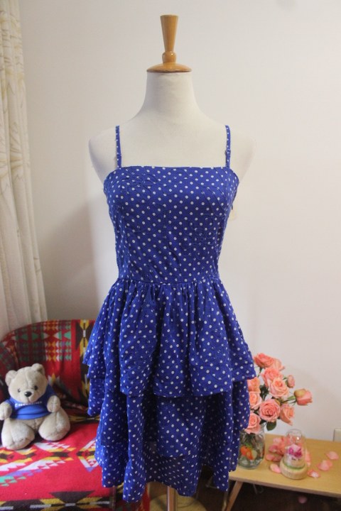 [Чистые товары] Структура бренда бренда сокровища синяя сладкая хлопчатобумажная точка точка точка камизол торт торт торт юбка