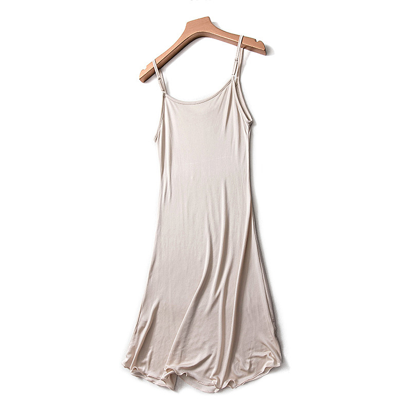 Платье, топ с чашечками, шелковая трикотажная длинная базовая пижама, средней длины