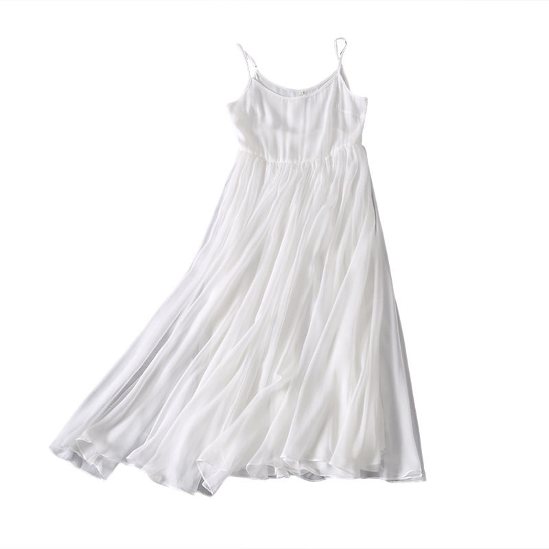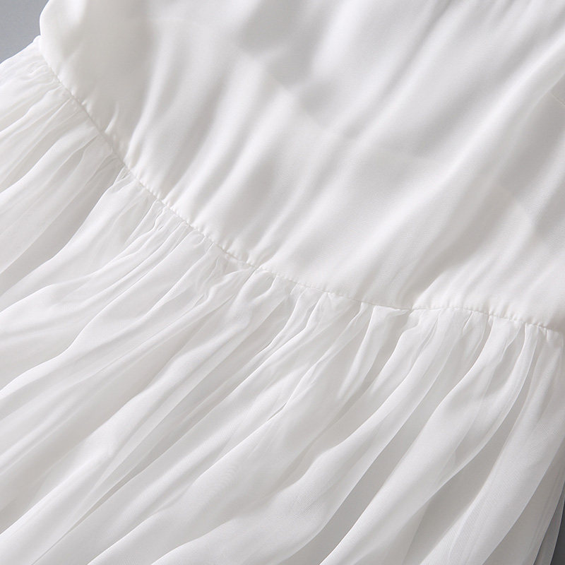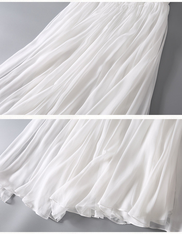 Ретро длинное базовое шифоновое белое платье, длинная юбка, эффект подтяжки, плиссированная юбка