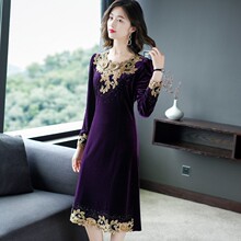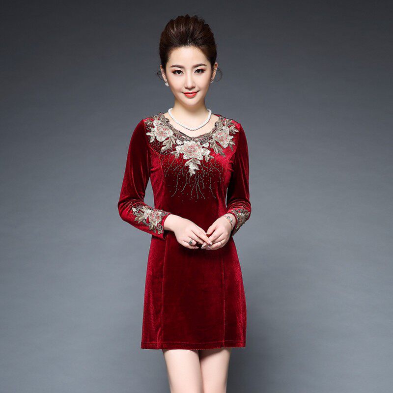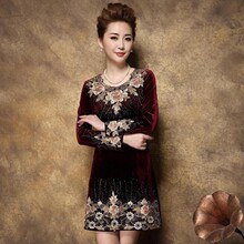 Демисезонный бархатный лонгслив, модное базовое платье, с вышивкой, большой размер, облегающий крой