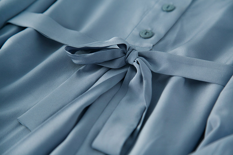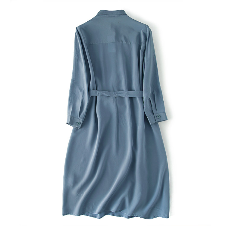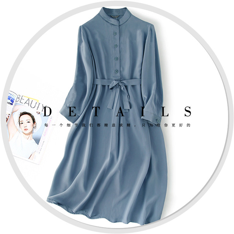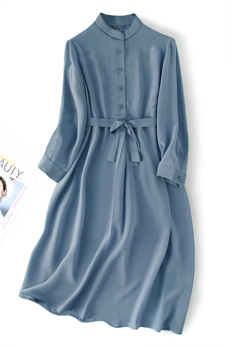 Шелковая длинная юбка, рубашка, шелковое платье, коллекция 2021, европейский стиль, высокий воротник, средней длины