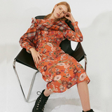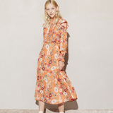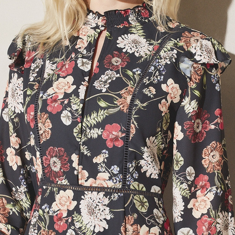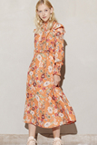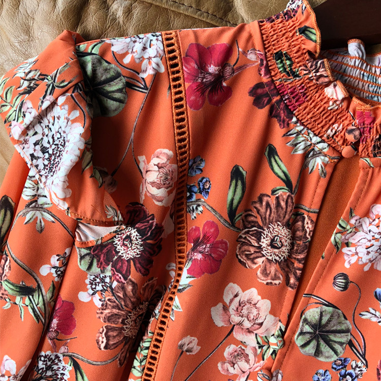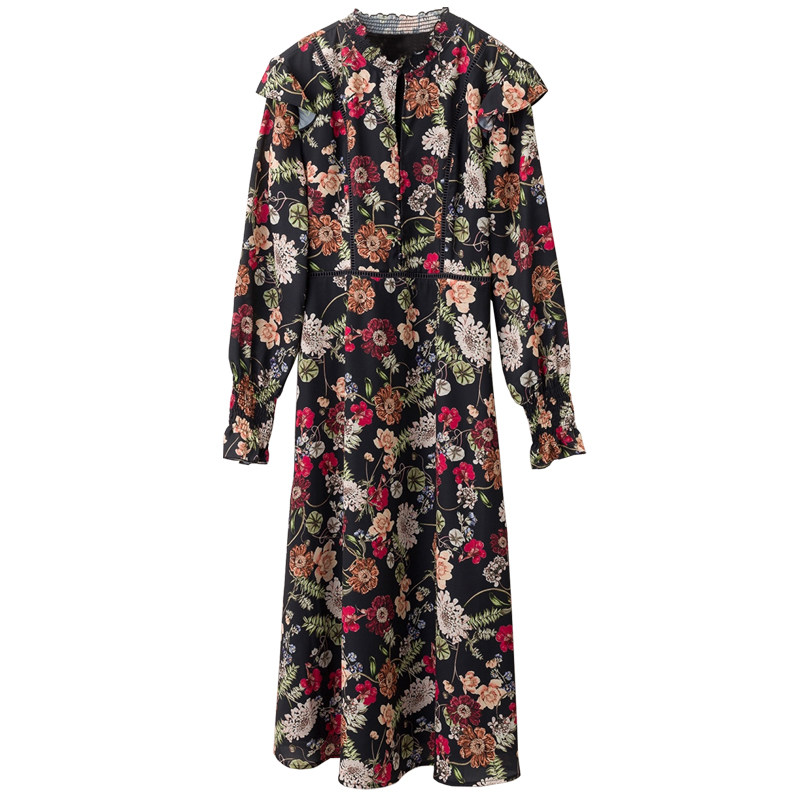 Корт ветер напечатано с длинным платье с изящным платьем изящный полый кружев