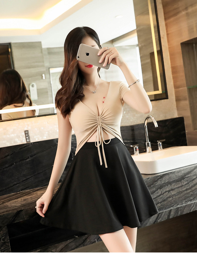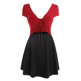 Сексуальный приталенный корсет, платье, мини-юбка, V-образный вырез, на шнурках