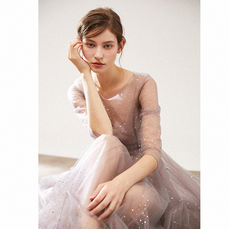 Дизайнерское платье, двухцветное звездное небо, комплект, легкий роскошный стиль, P6