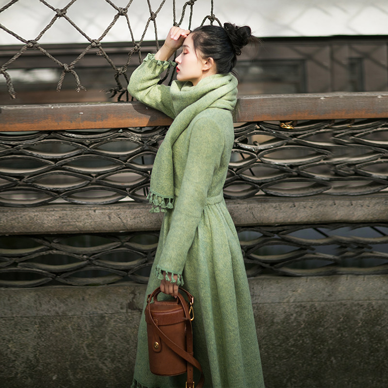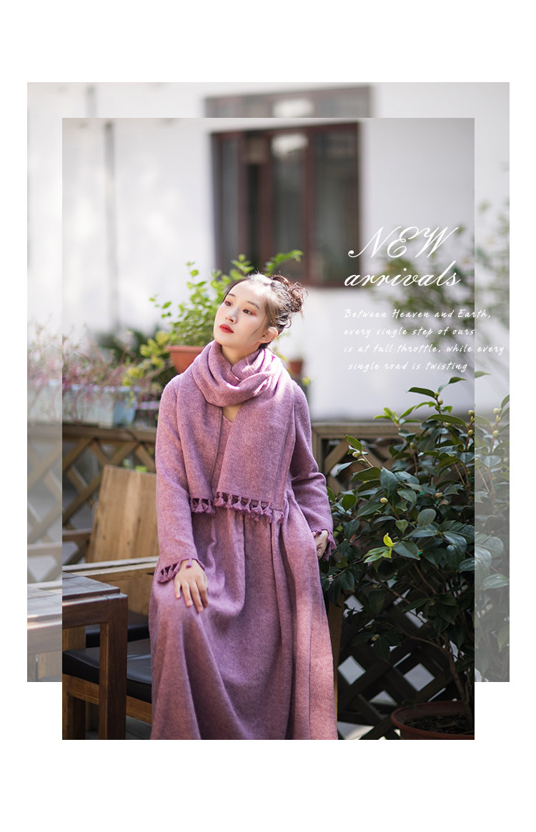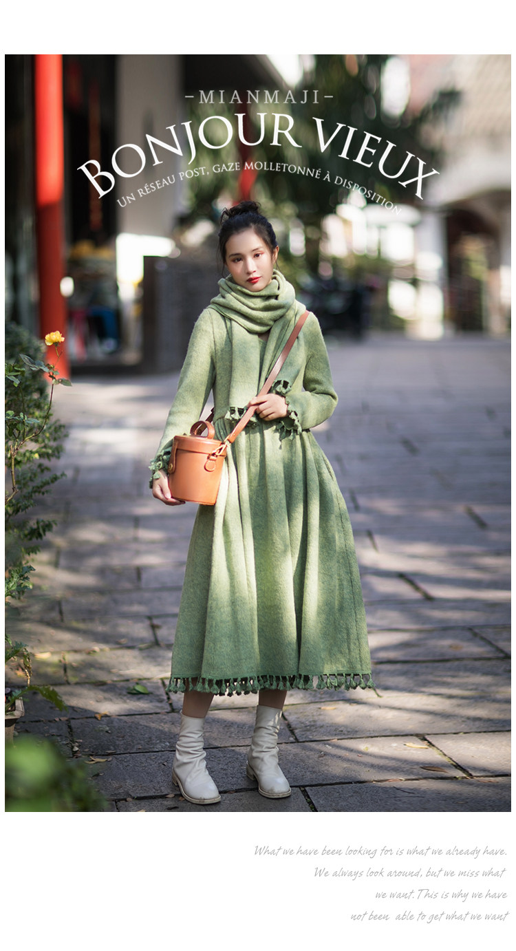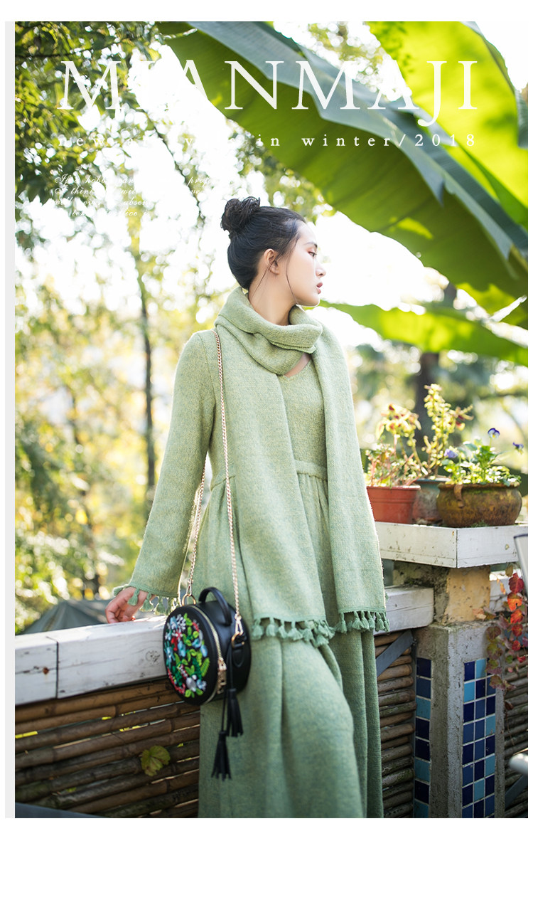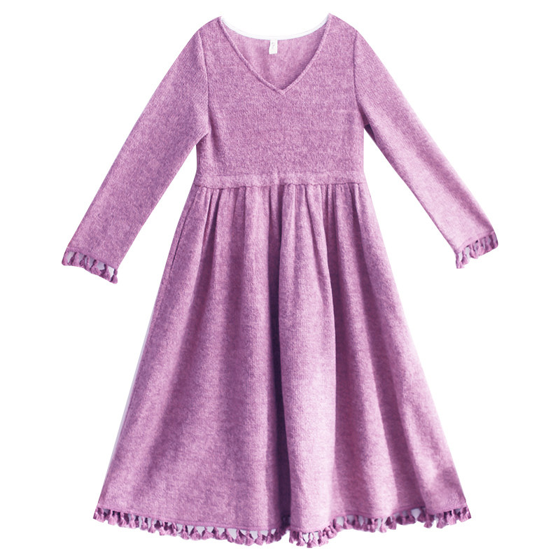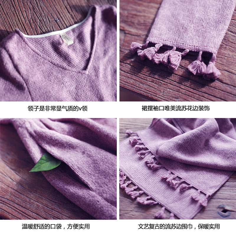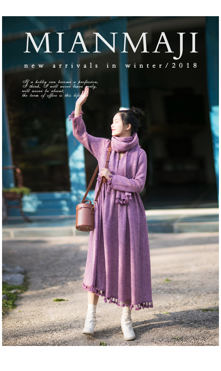 Осенний длинный шерстяной трикотажный лонгслив, платье с кисточками, шарф, (в наличии на складе), из хлопка и льна, коллекция 2021, средней длины