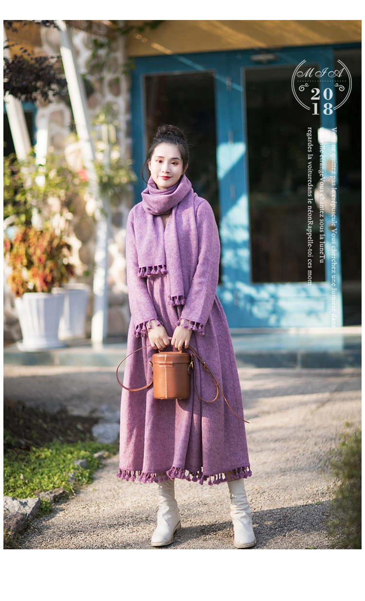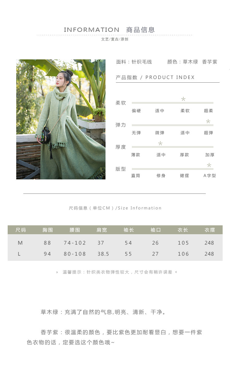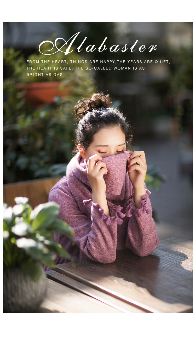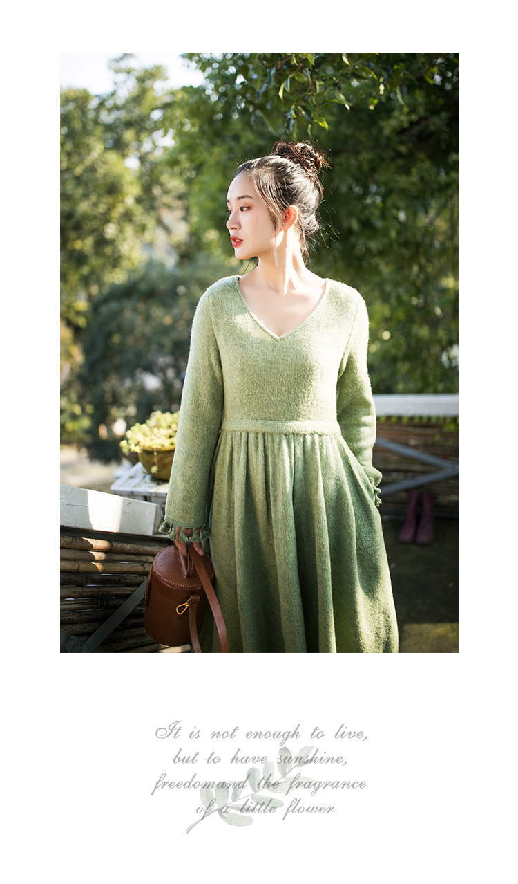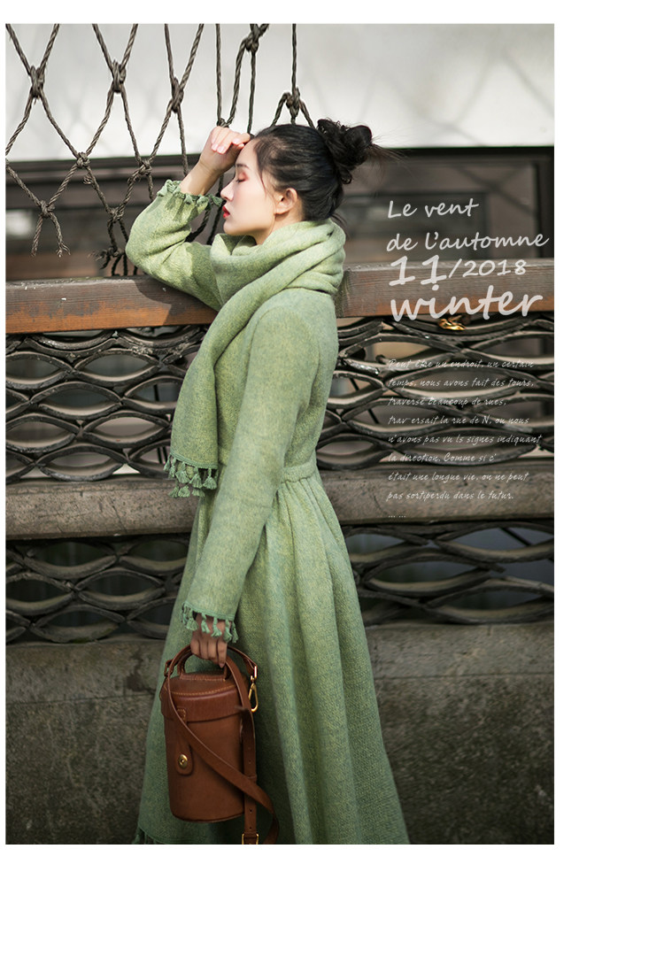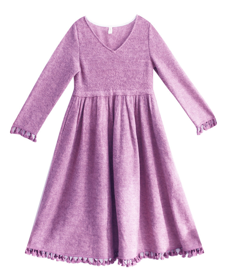 Осенний длинный шерстяной трикотажный лонгслив, платье с кисточками, шарф, (в наличии на складе), из хлопка и льна, коллекция 2021, средней длины