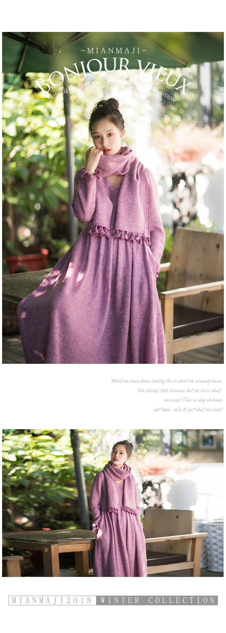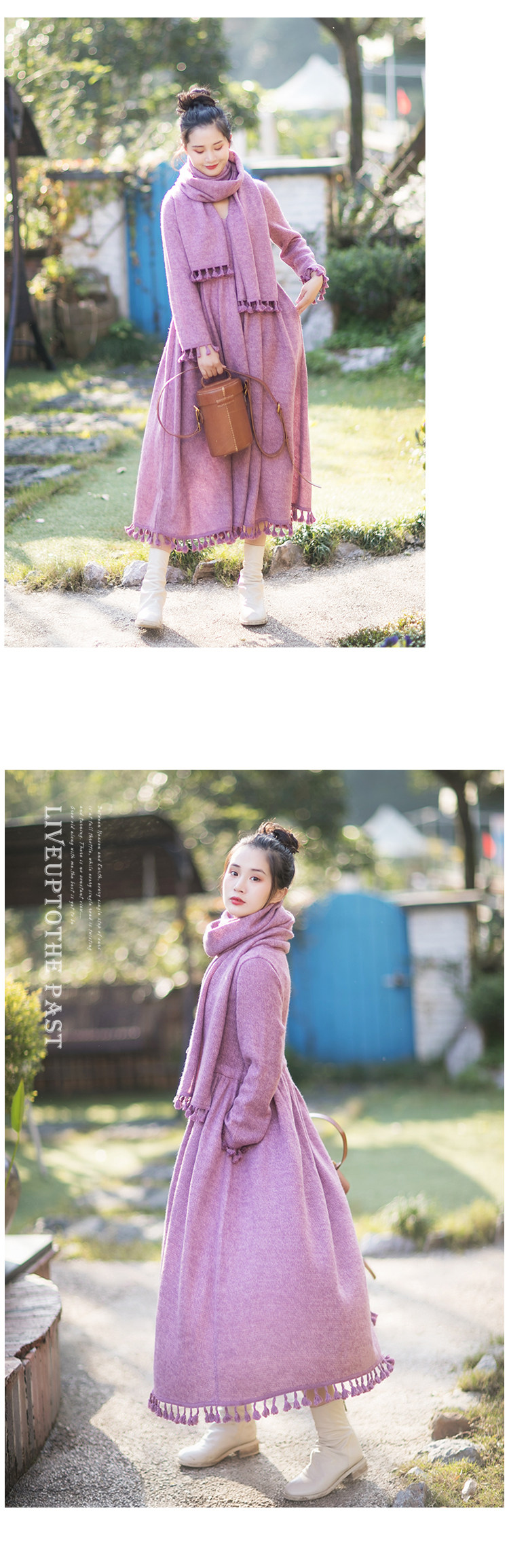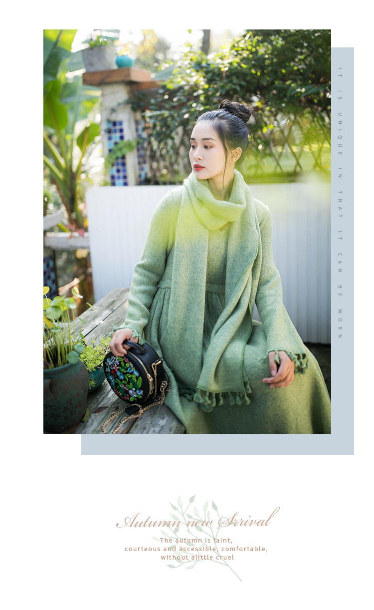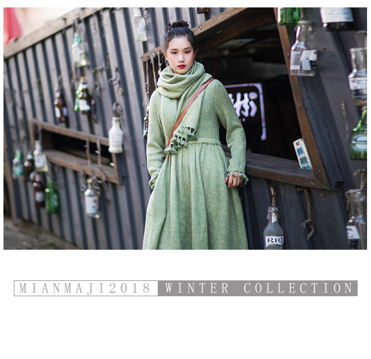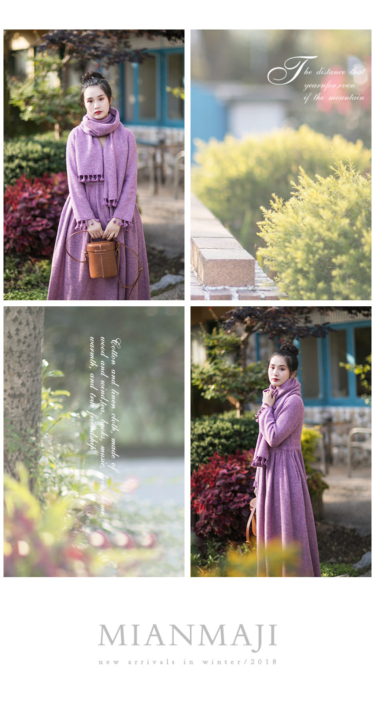Осенний длинный шерстяной трикотажный лонгслив, платье с кисточками, шарф, (в наличии на складе), из хлопка и льна, коллекция 2021, средней длины