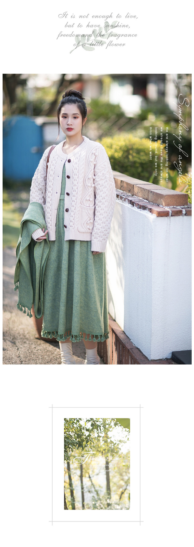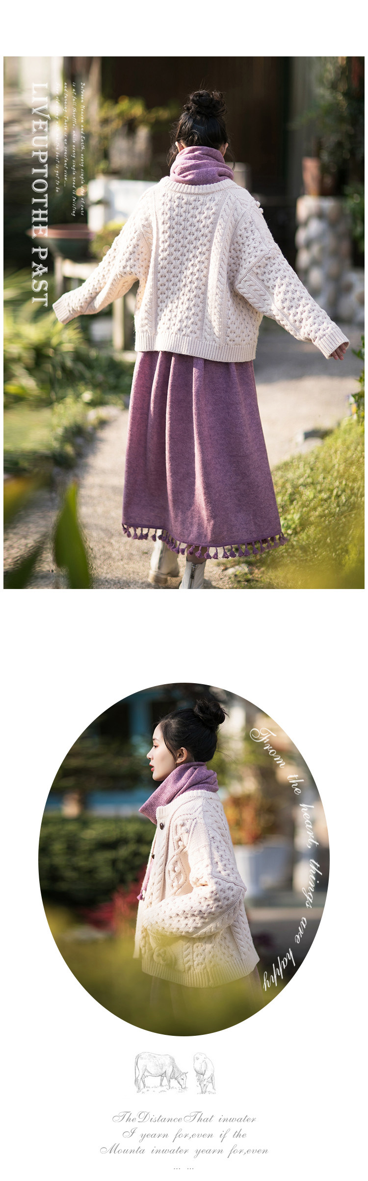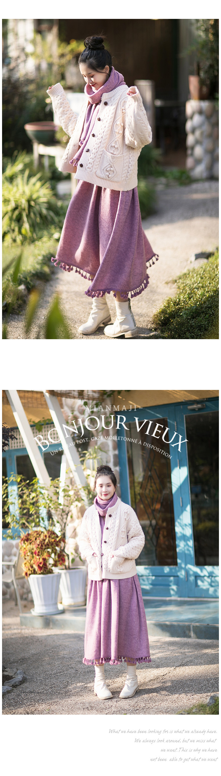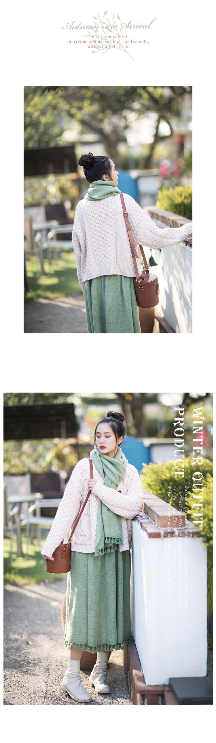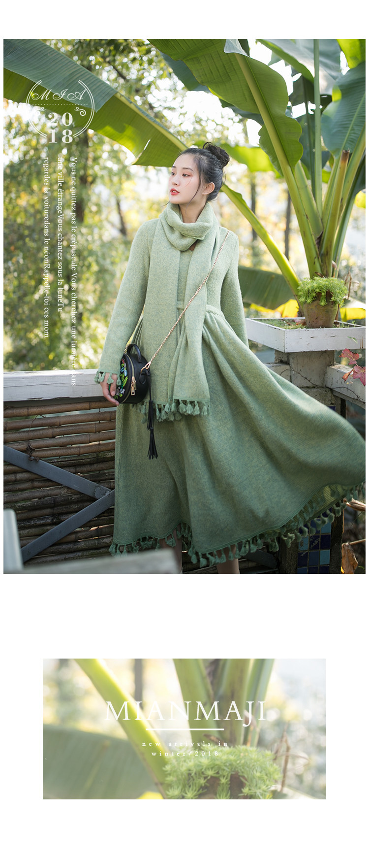 Осенний длинный шерстяной трикотажный лонгслив, платье с кисточками, шарф, (в наличии на складе), из хлопка и льна, коллекция 2021, средней длины