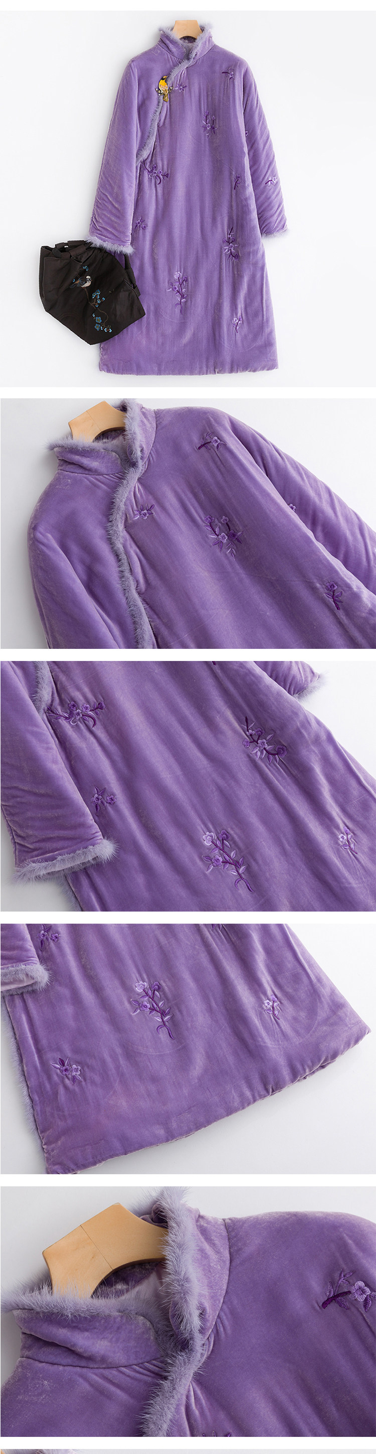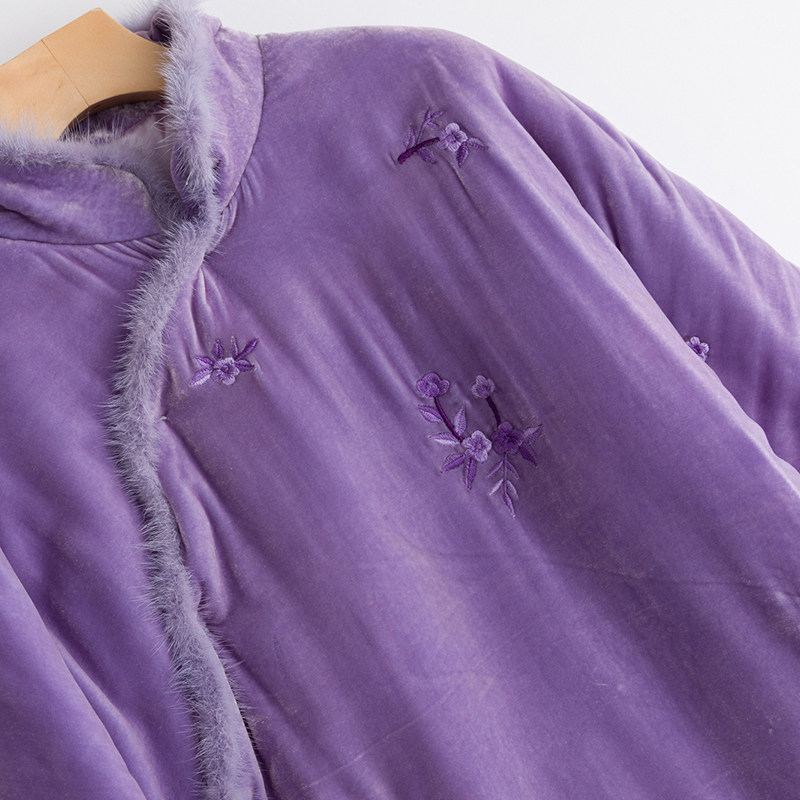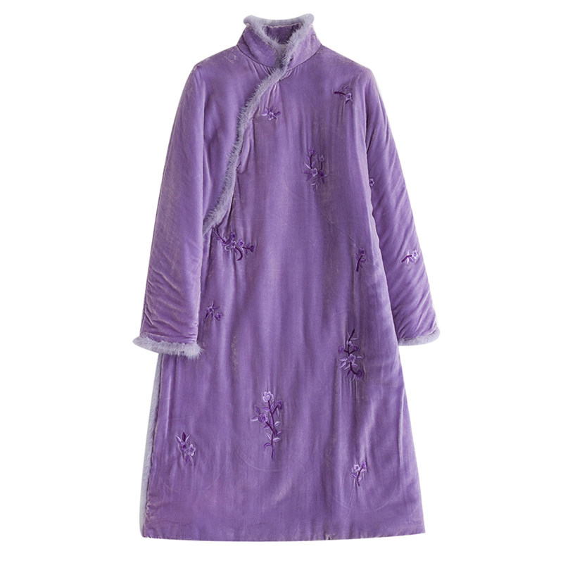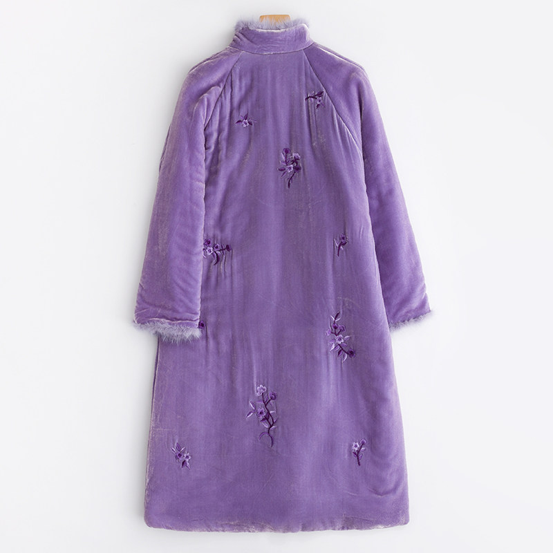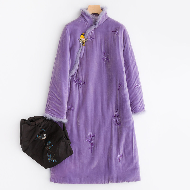 Демисезонное длинное шелковое бархатное ретро платье, средней длины, с вышивкой