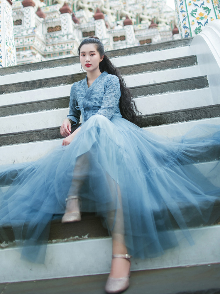 Шифоновая летняя ретро длинная юбка, платье, из фатина