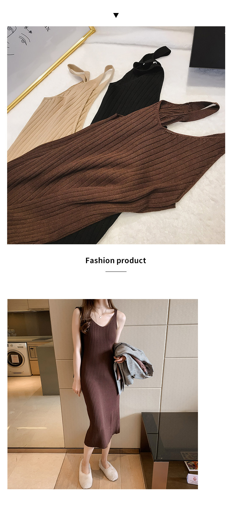 Осеннее трикотажное платье, базовая длинная юбка, платье без рукавов, эффект подтяжки, в корейском стиле, облегающий крой