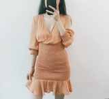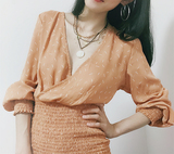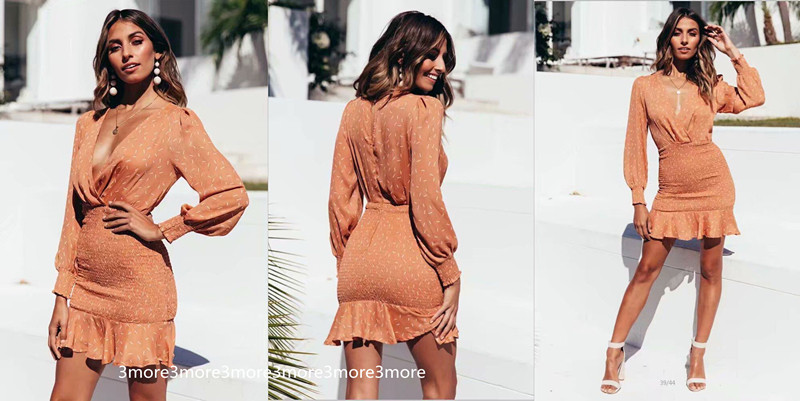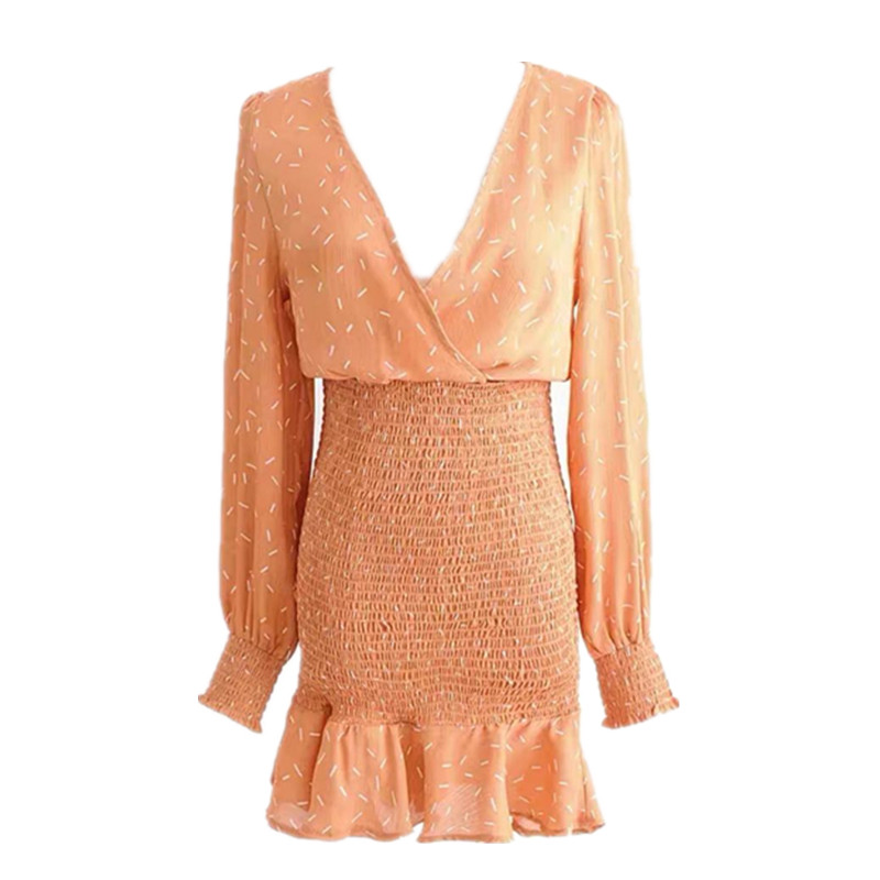 Оранжевая поясная сумка, пляжное шифоновое летнее платье, рукава фонарики, V-образный вырез, высокая талия, облегающий крой