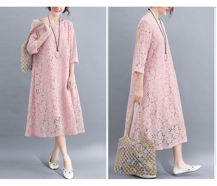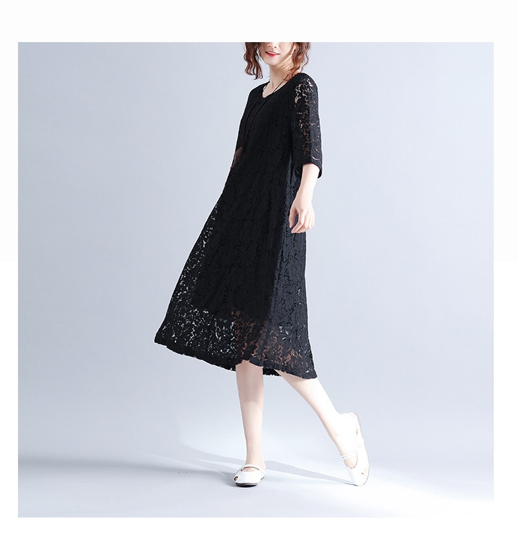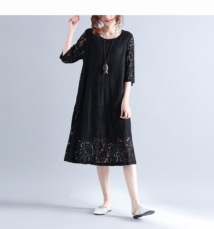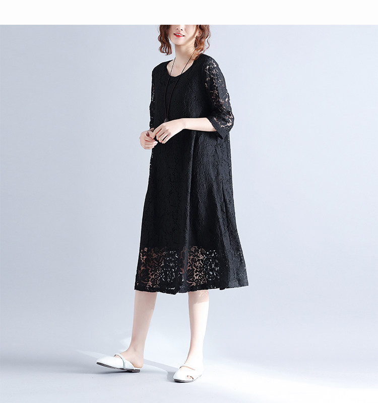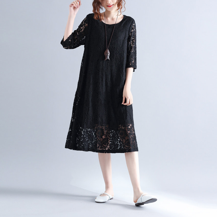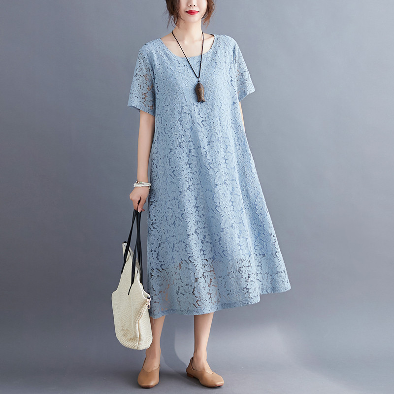 Летняя летняя одежда, кружевная длинная юбка, платье с рукавами с круглым воротником, по фигуре