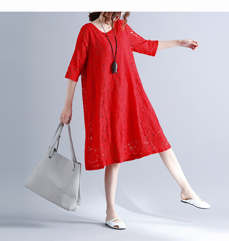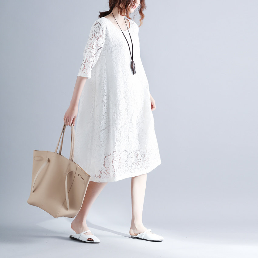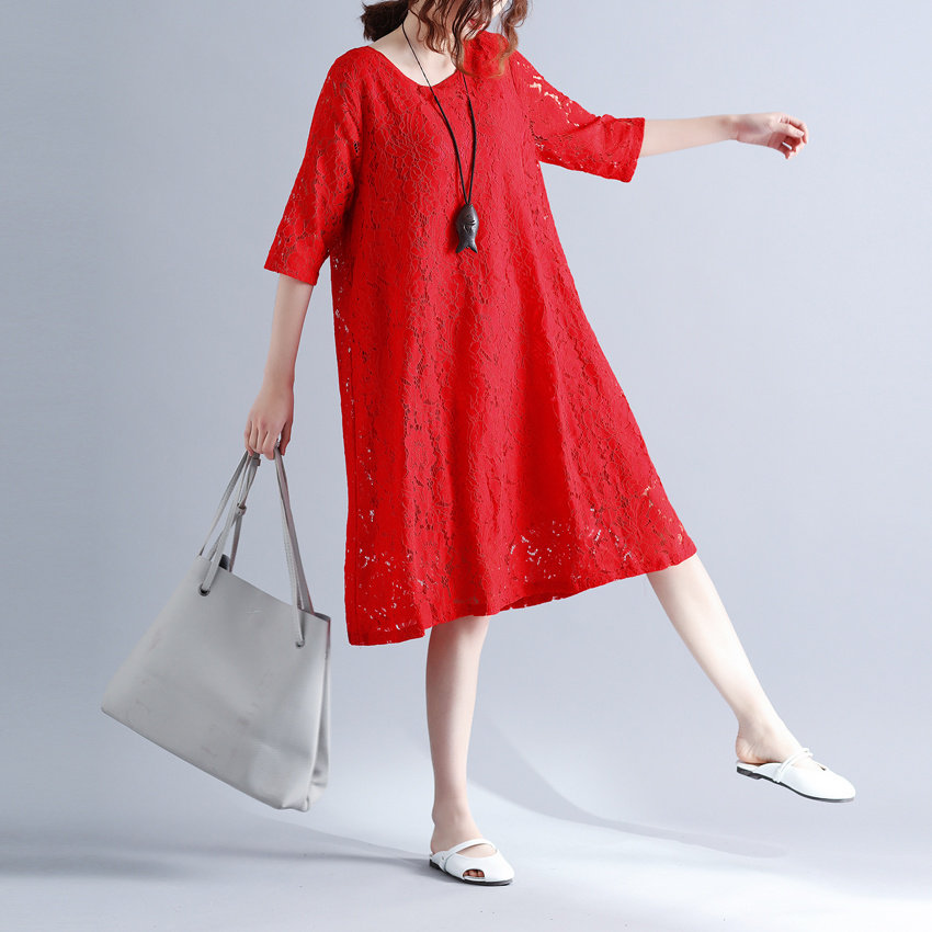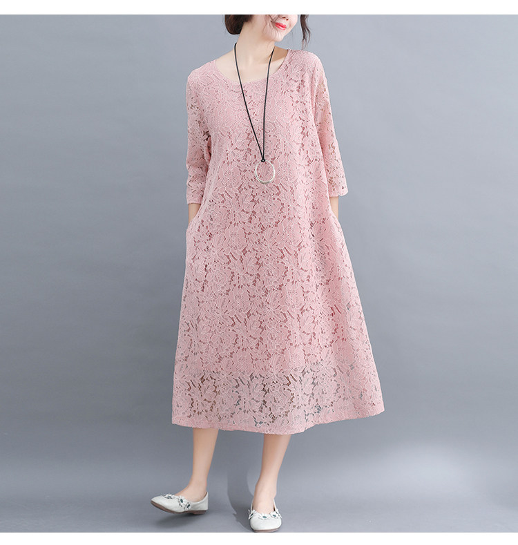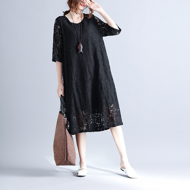 Летняя летняя одежда, кружевная длинная юбка, платье с рукавами с круглым воротником, по фигуре