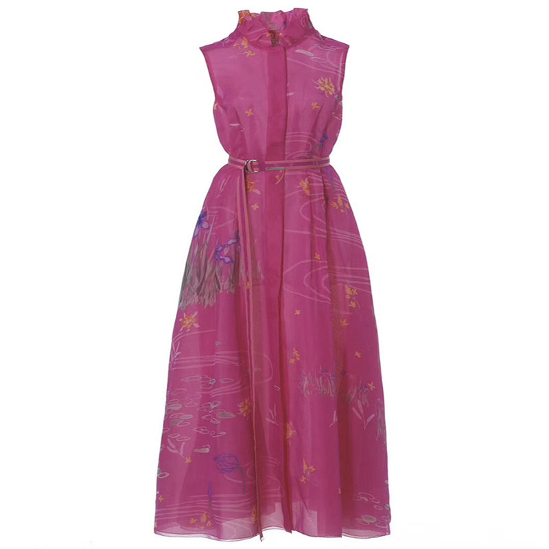 Летнее длинное платье без рукавов, китайский стиль