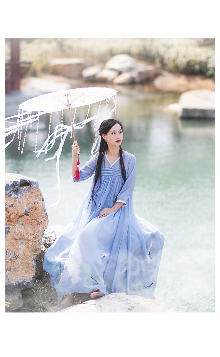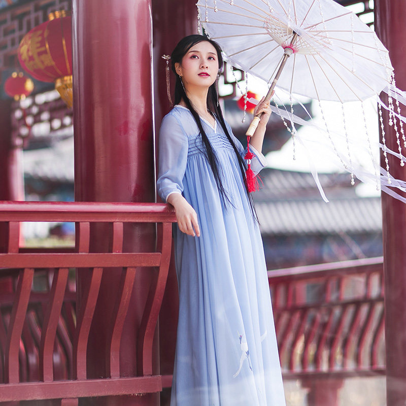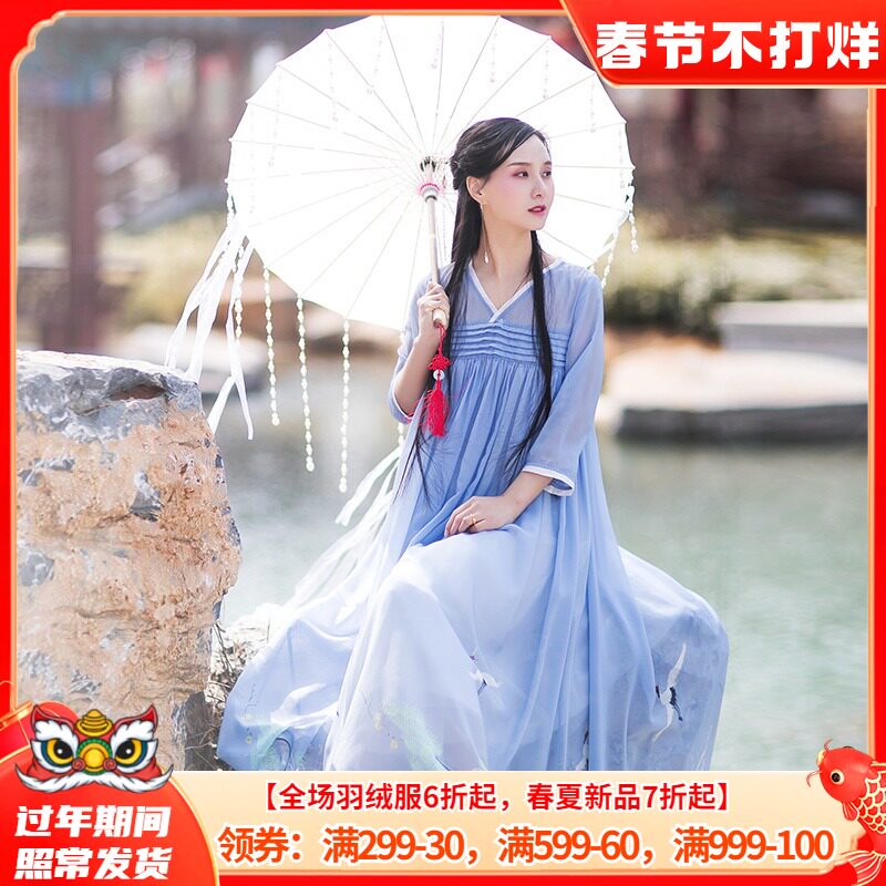 Платье, ретро летняя одежда, длинное шифоновое ханьфу, (в наличии на складе), сезон 2021