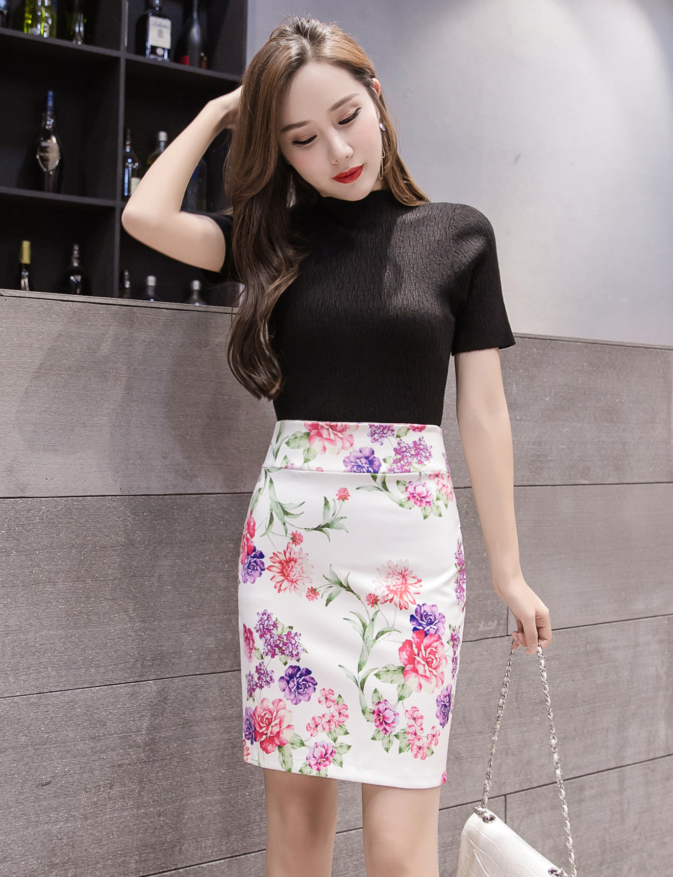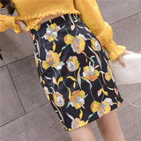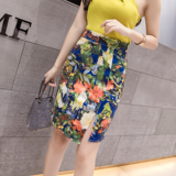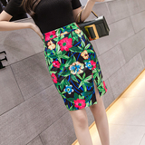 Короткая юбка, приталенная мини-юбка, коллекция 2022, с акцентом на бедрах, высокая талия, цветочный принт