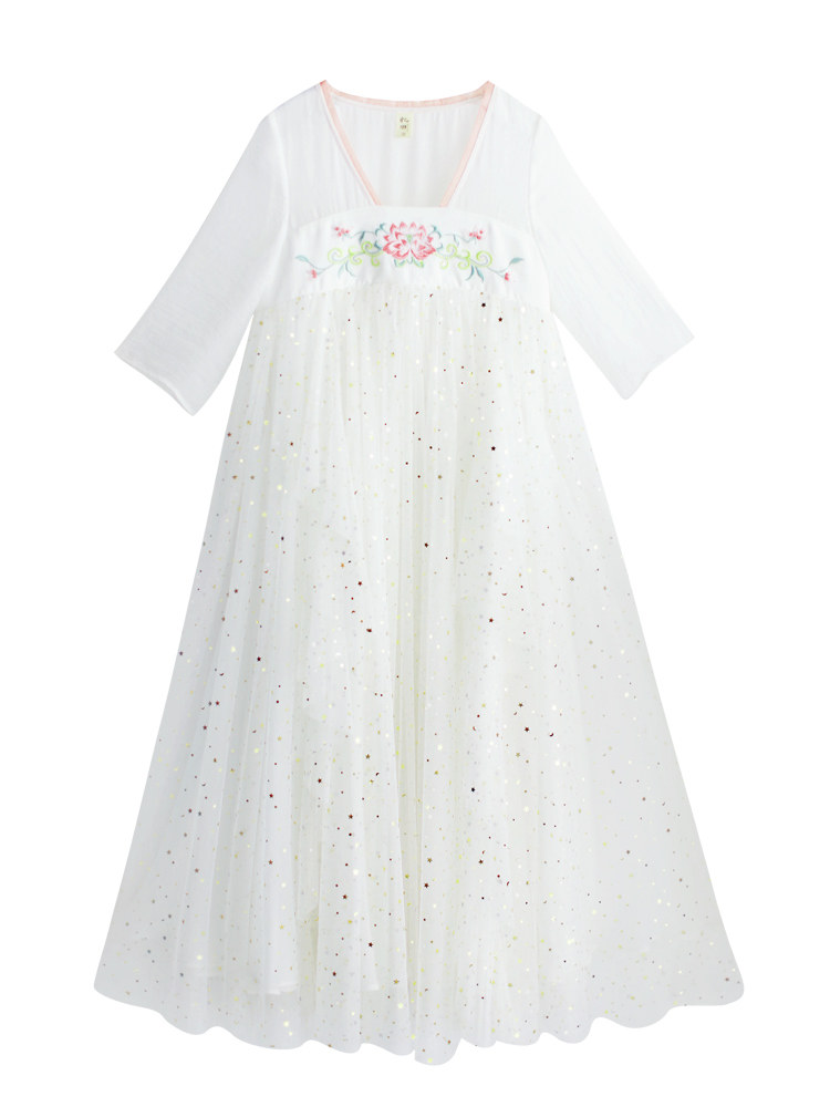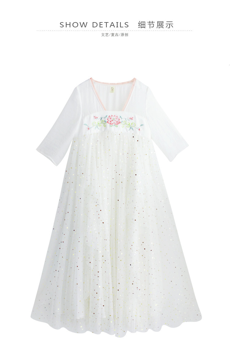Летняя длинная юбка, платье, из хлопка и льна, с вышивкой