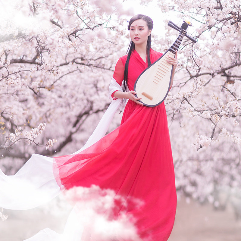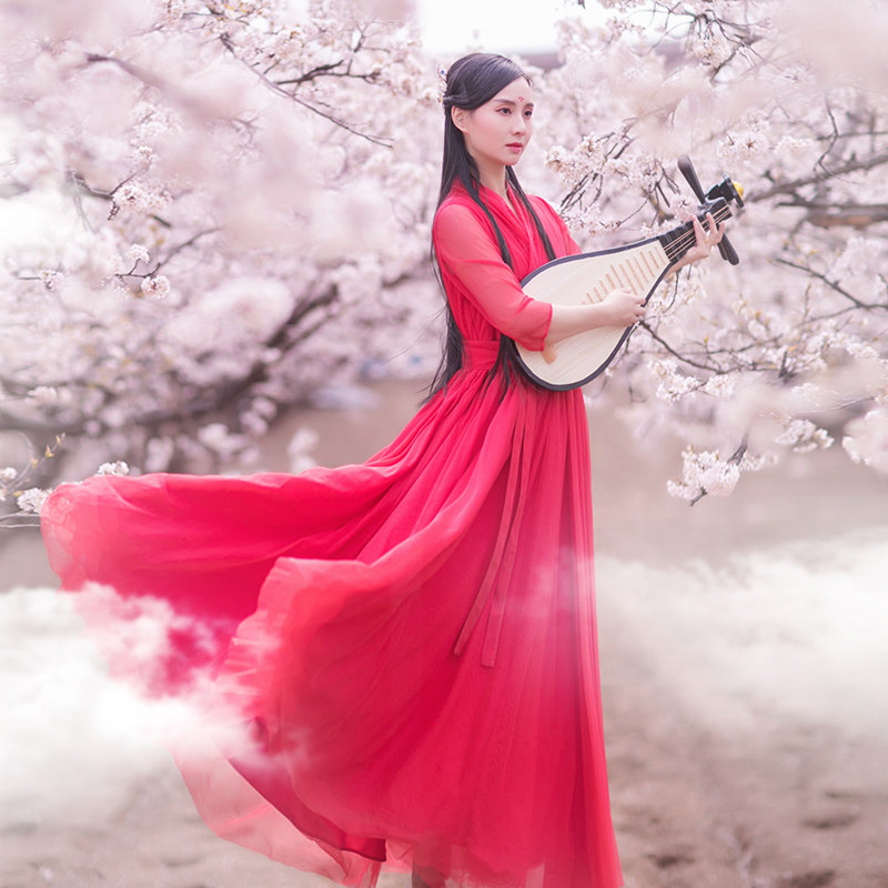 Ханьфу, летняя длинная юбка, приталенный корсет, платье, (в наличии на складе), из хлопка и льна, из фатина