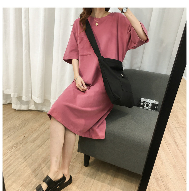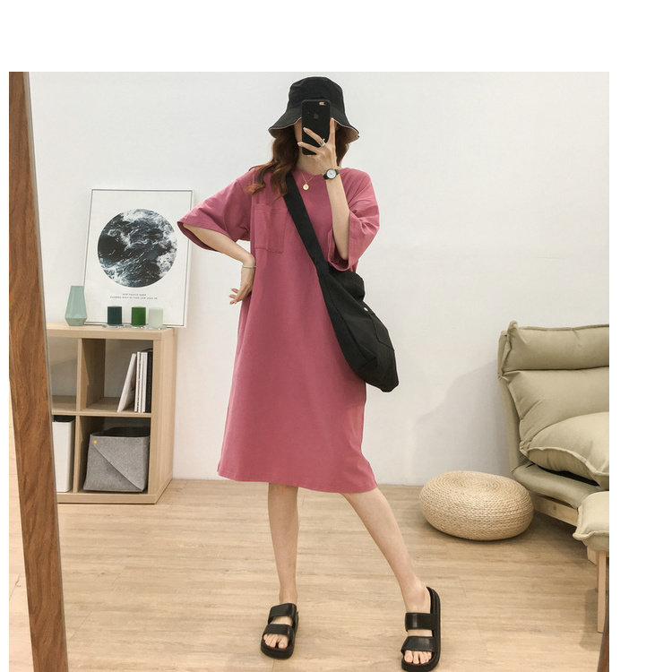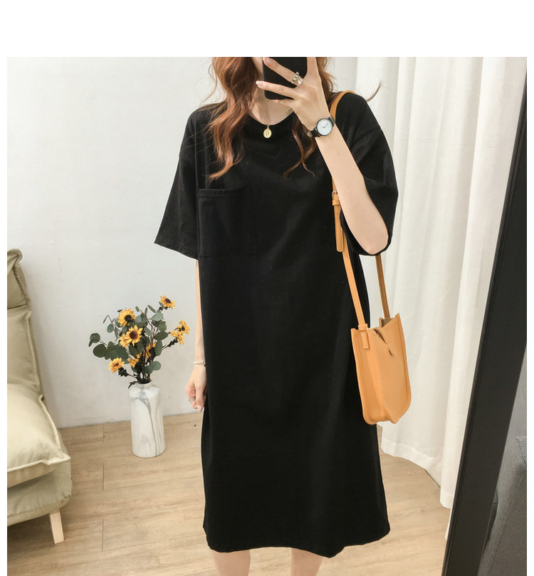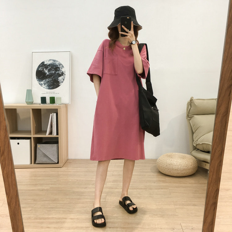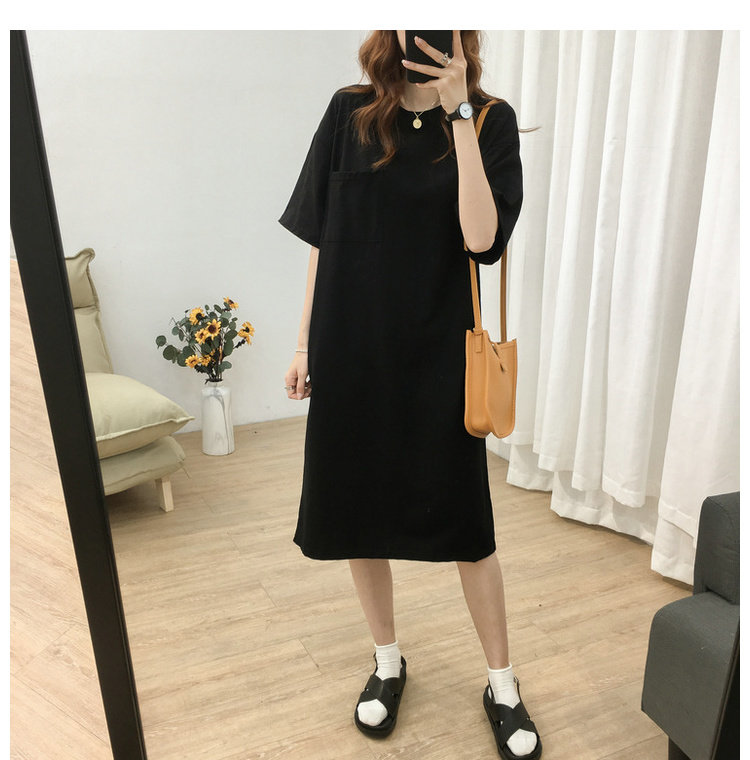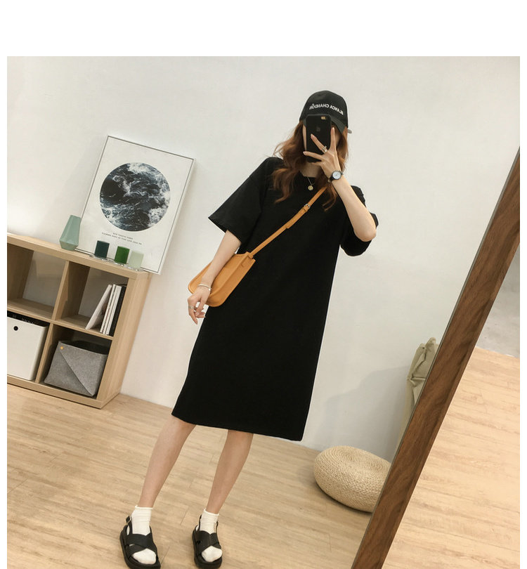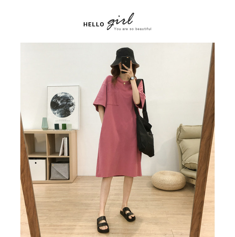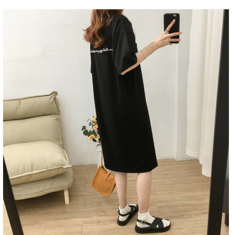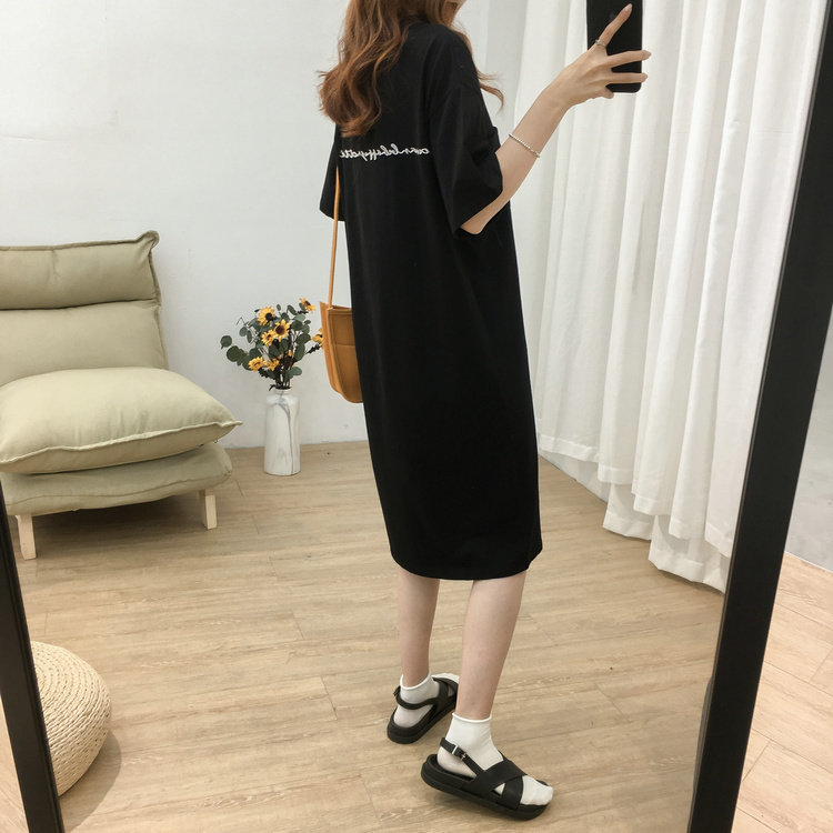 Длинная футболка с коротким рукавом, платье, в корейском стиле, средней длины, большой размер, с вышивкой