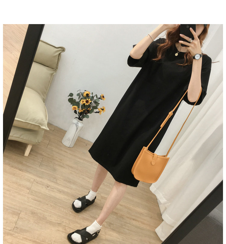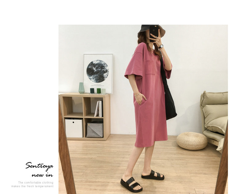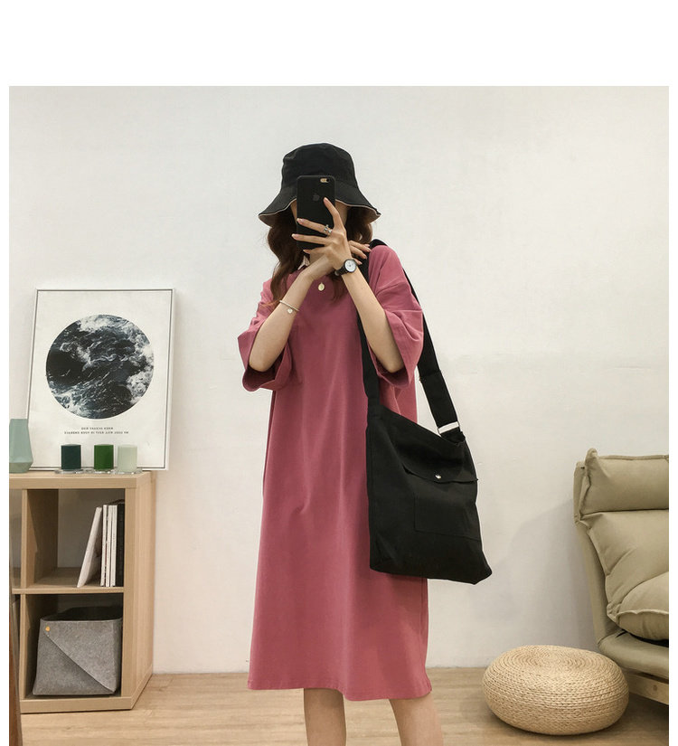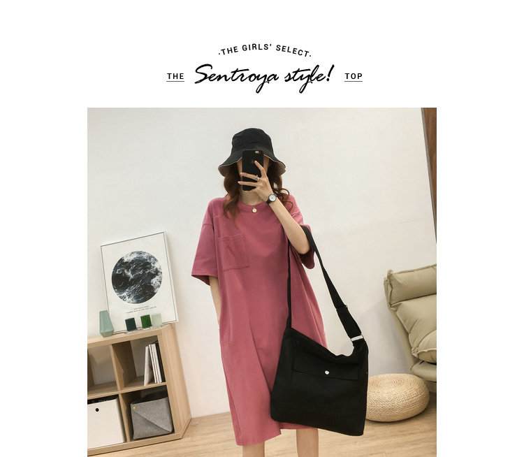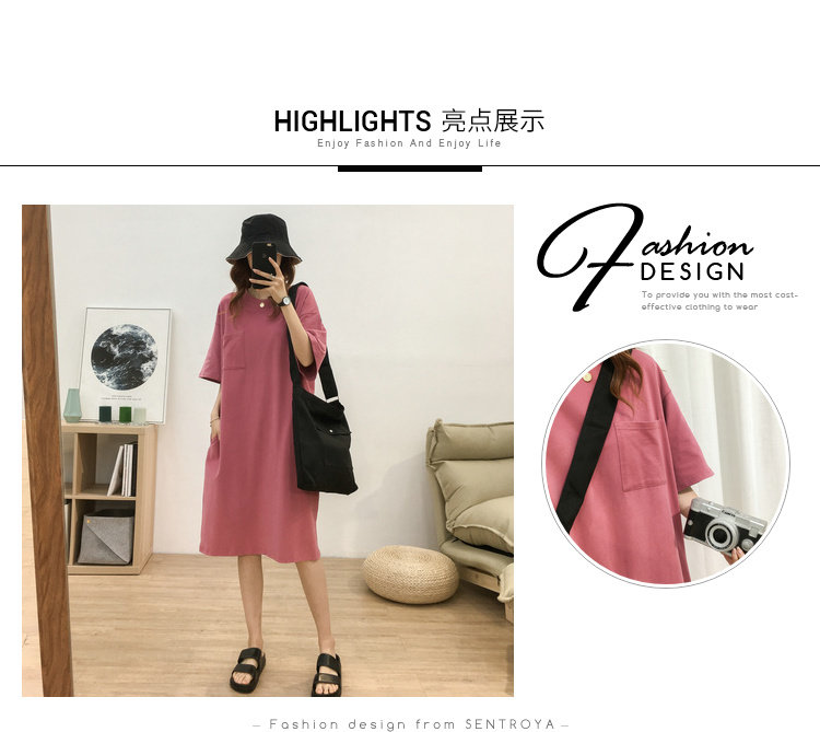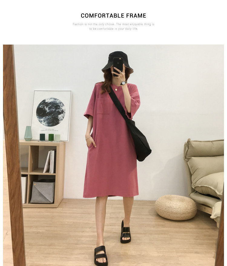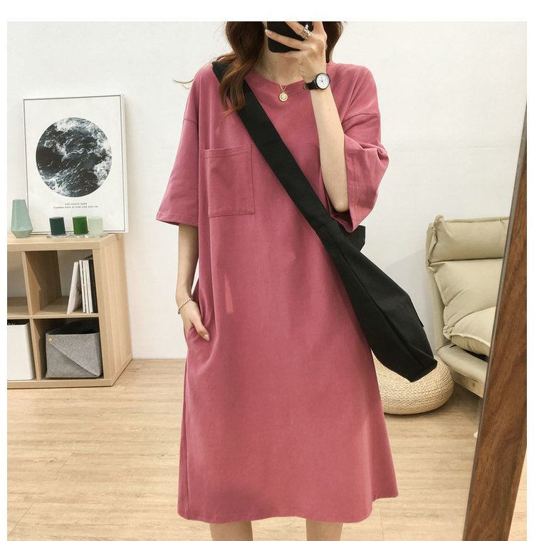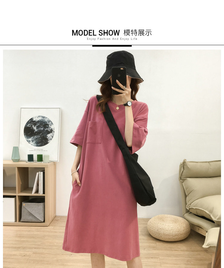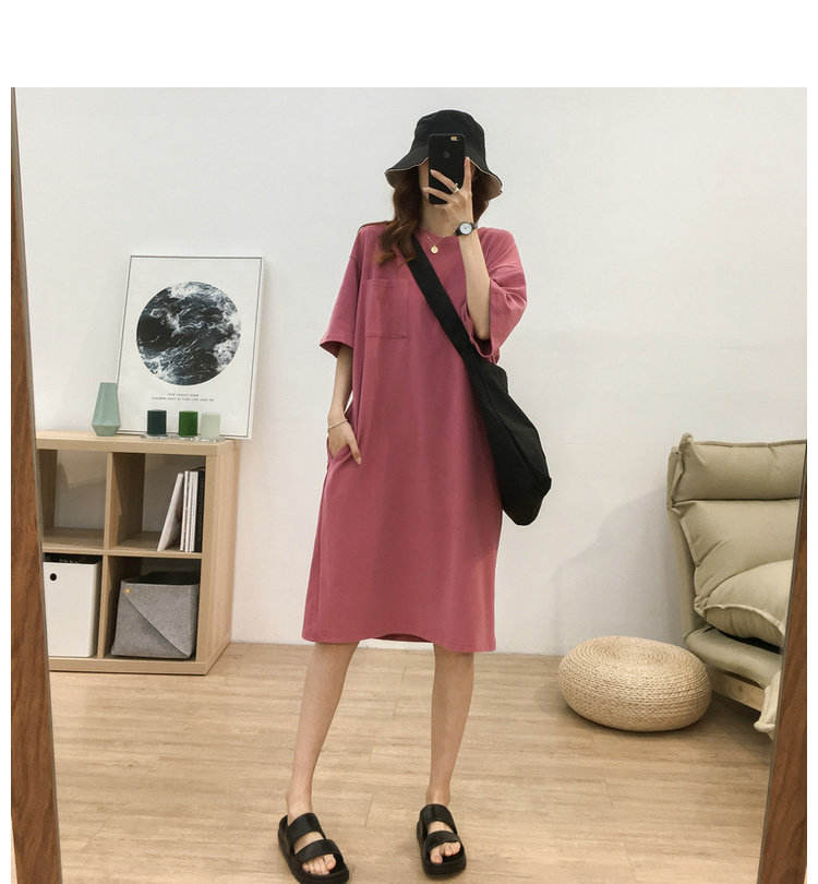 Длинная футболка с коротким рукавом, платье, в корейском стиле, средней длины, большой размер, с вышивкой
