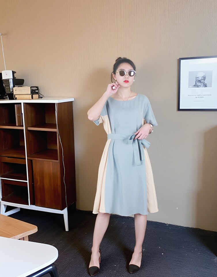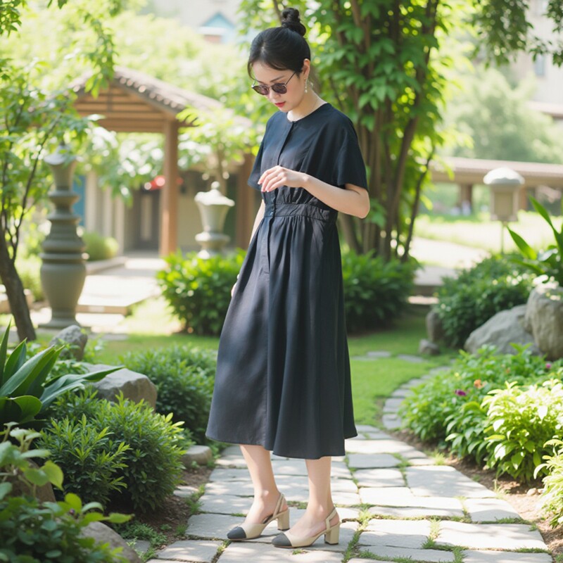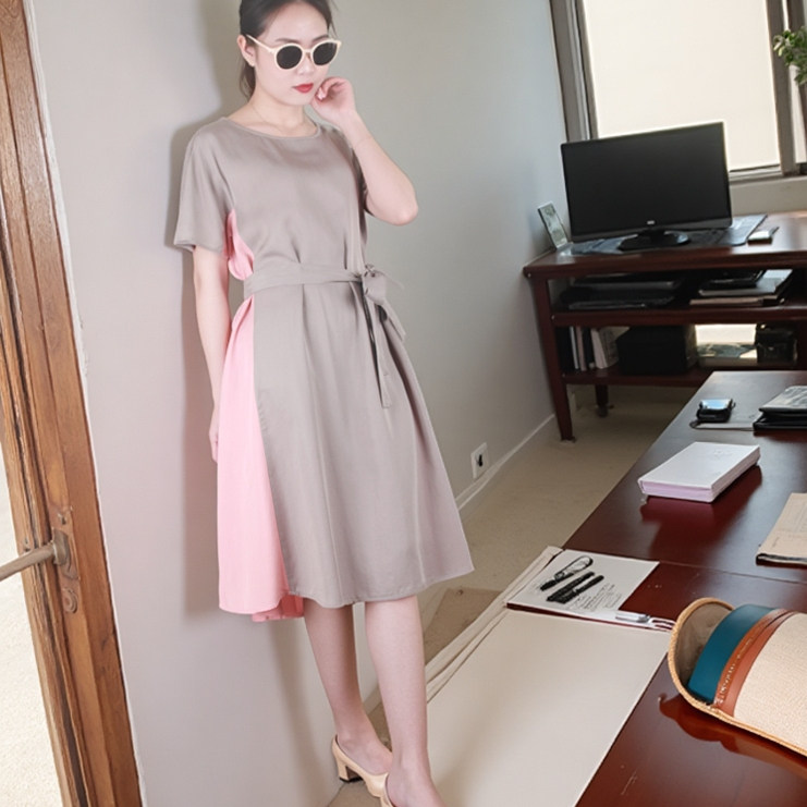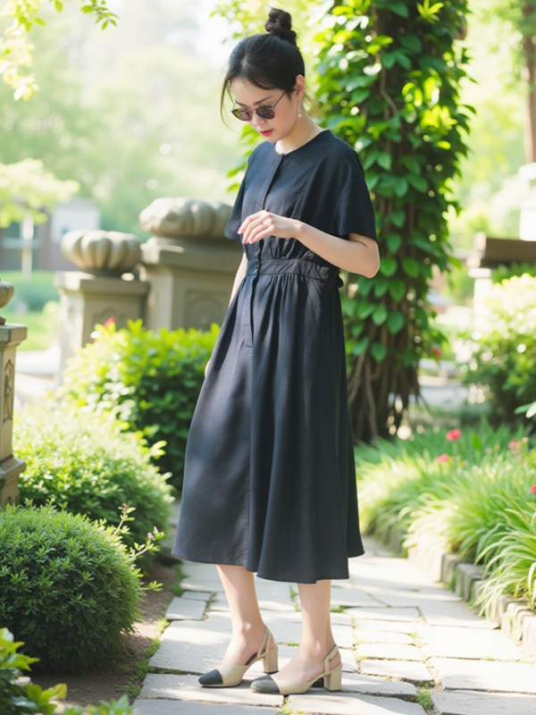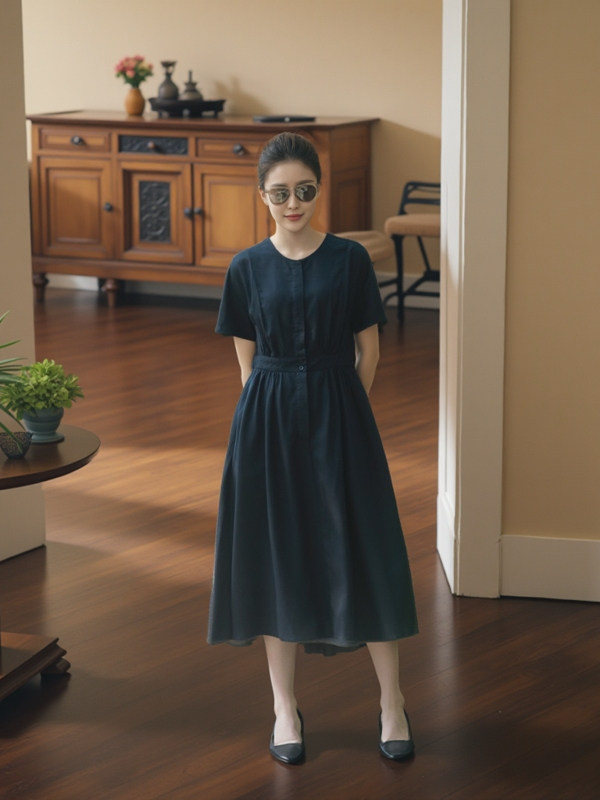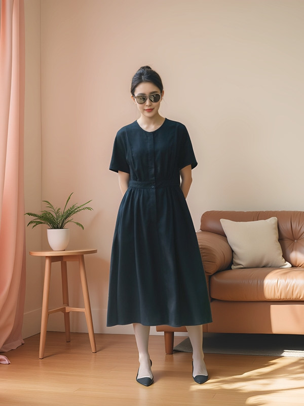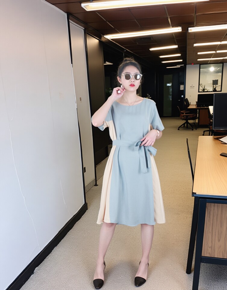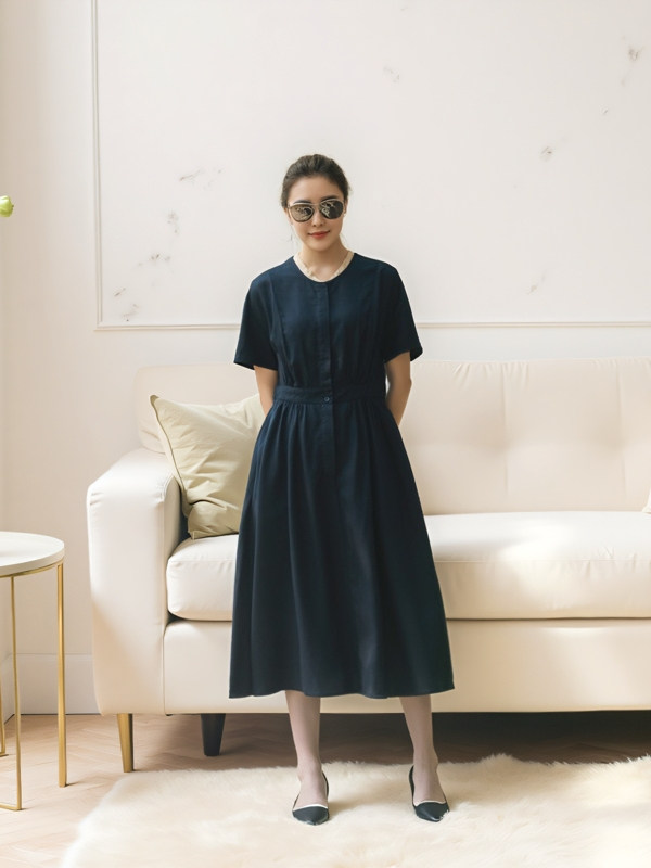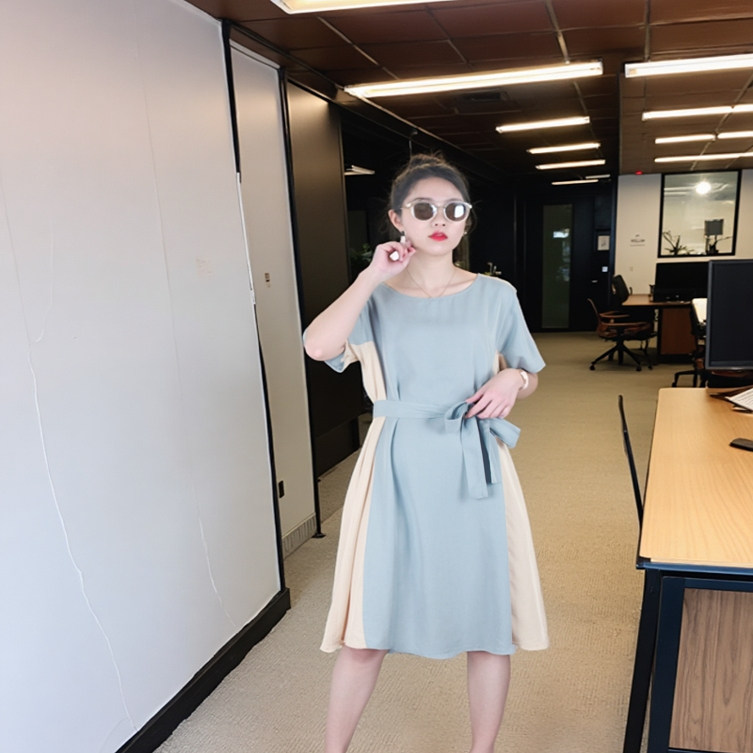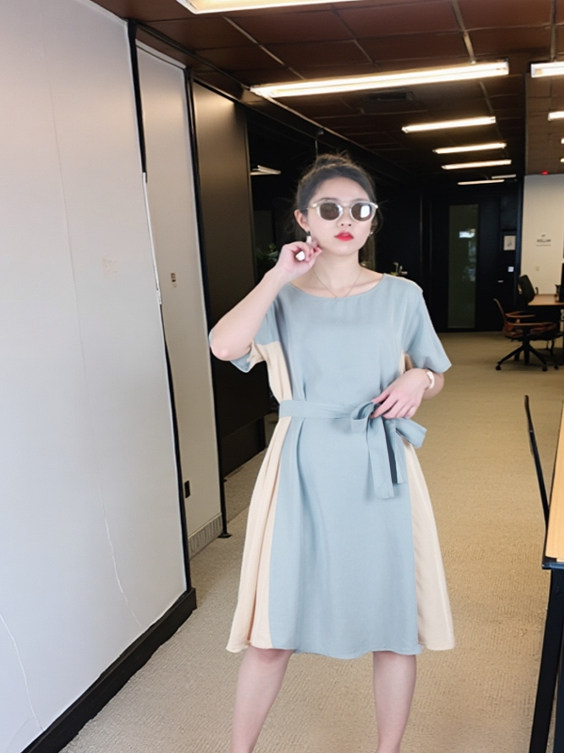 Платье с круглым воротником, приталенная рубашка, корсет, летняя длинная юбка