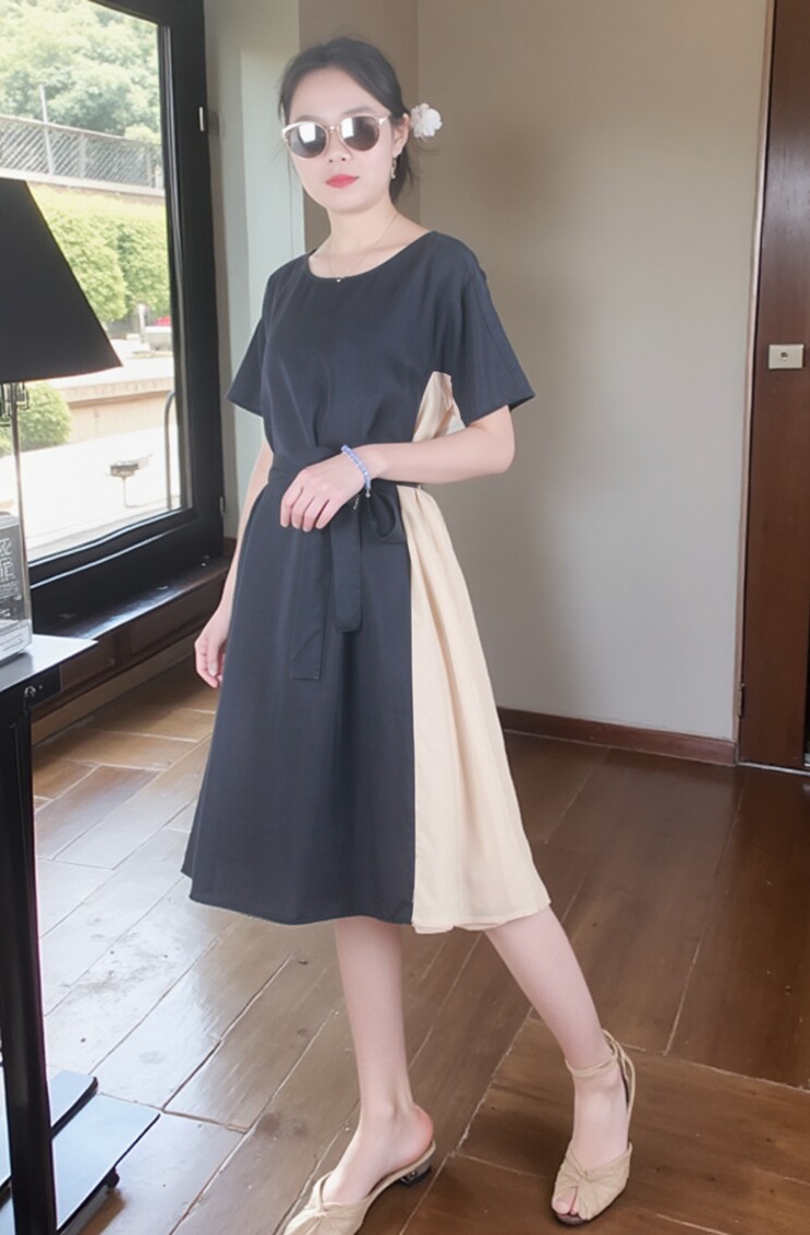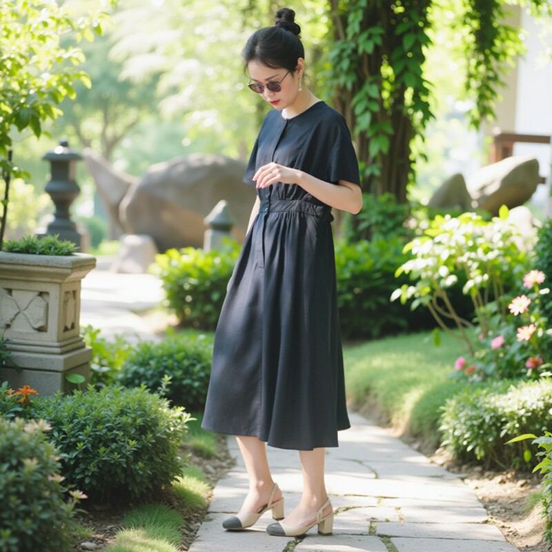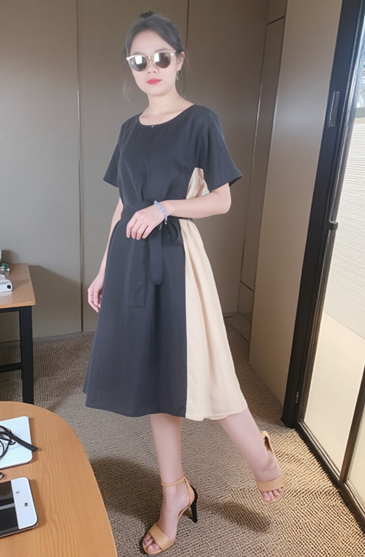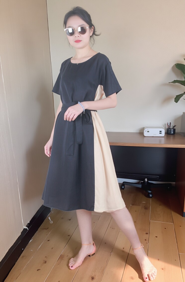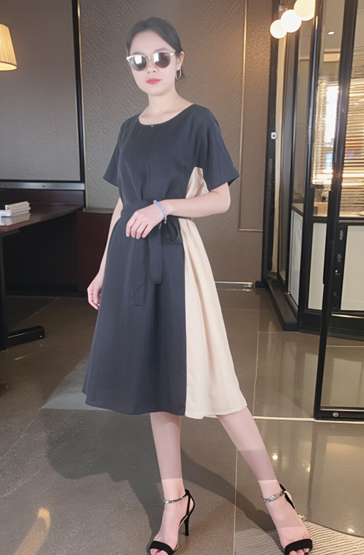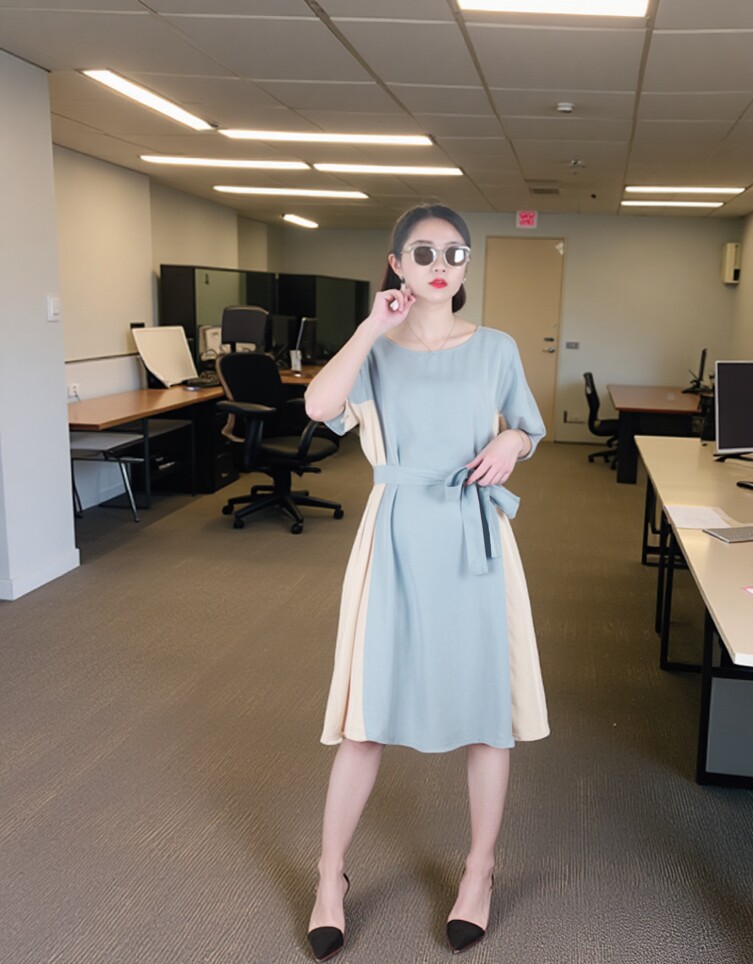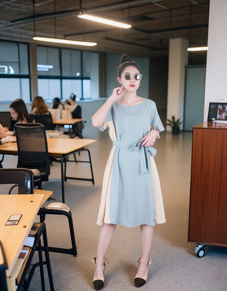 Платье с круглым воротником, приталенная рубашка, корсет, летняя длинная юбка