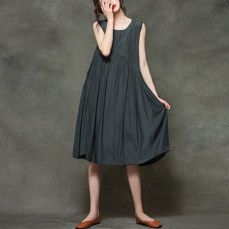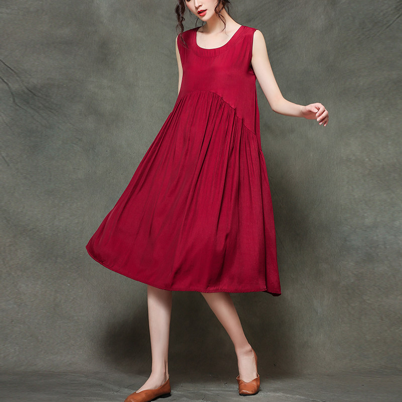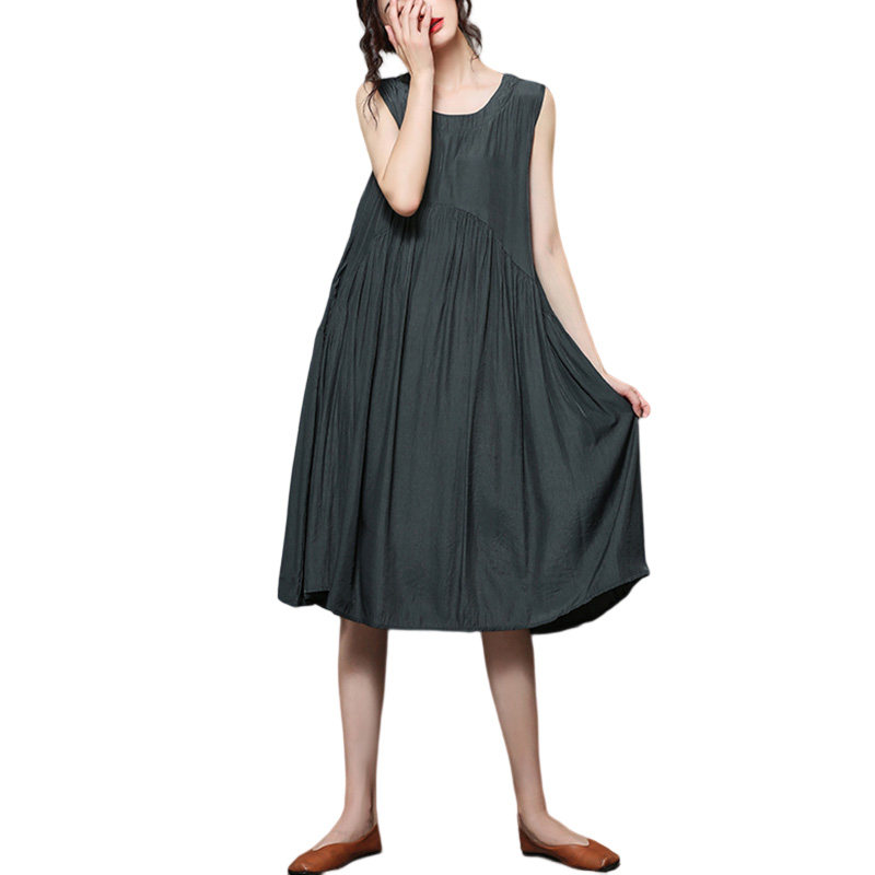 Летнее платье без рукавов, ретро медная юбка, в западном стиле, оверсайз, по фигуре