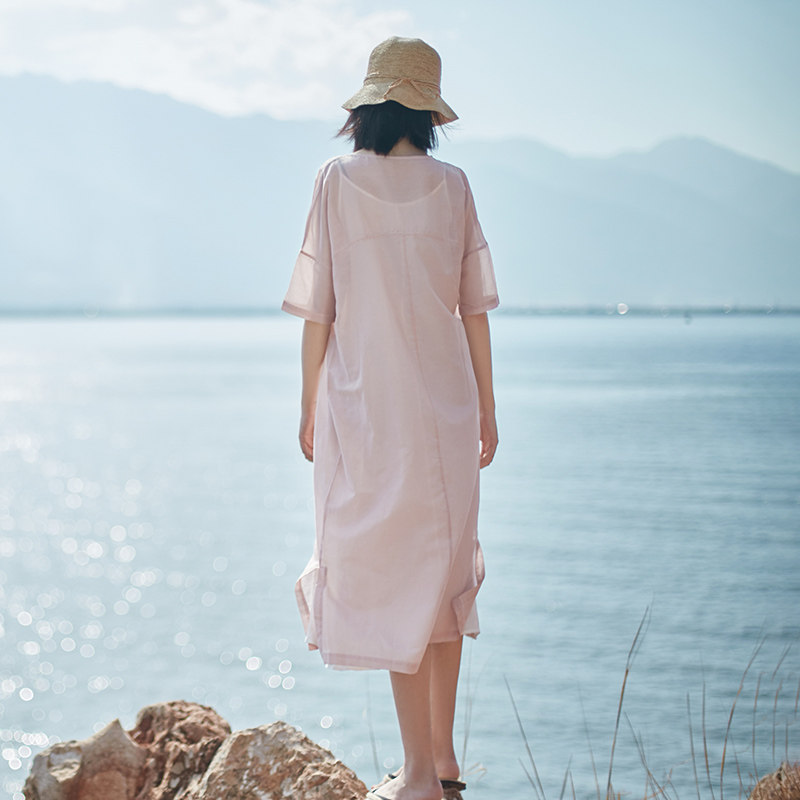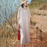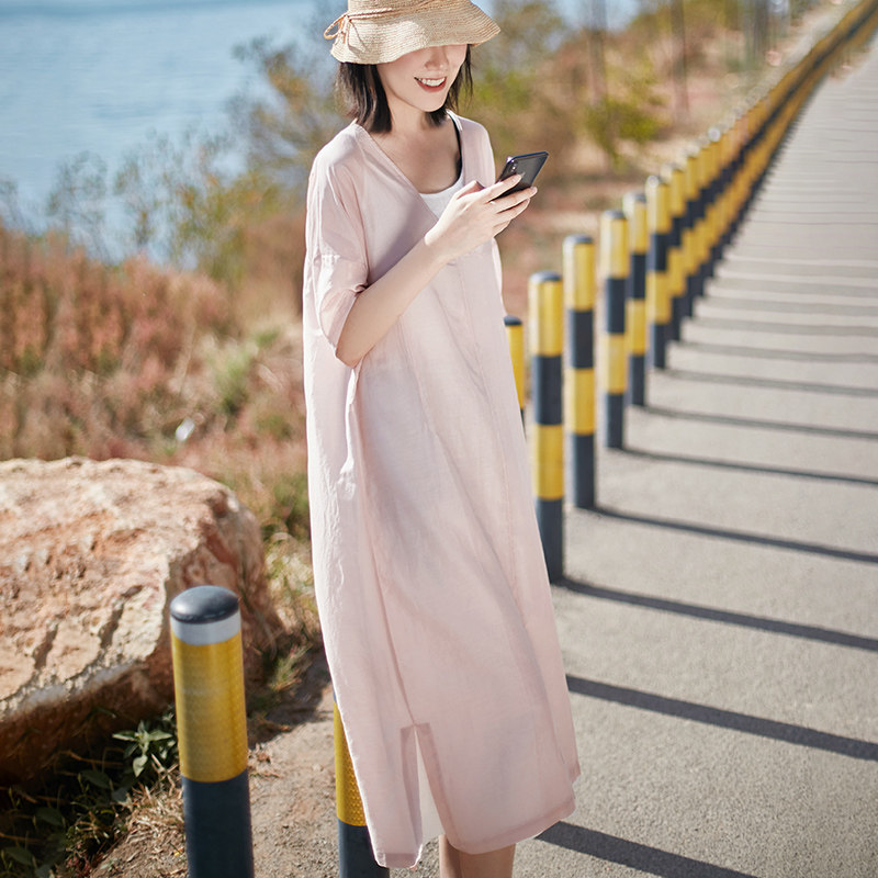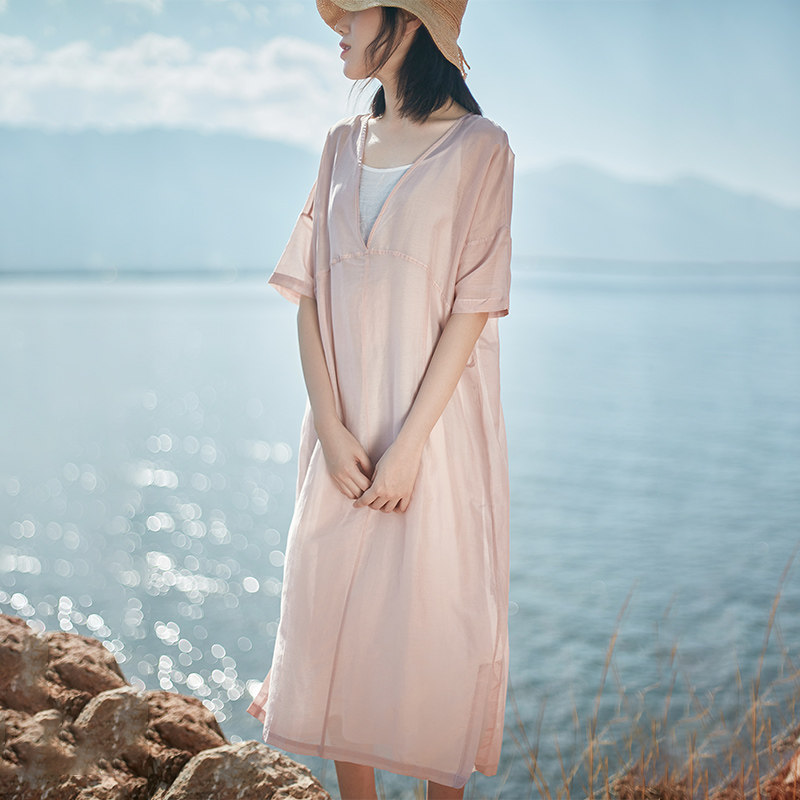 Платье, юбка, легкая и тонкая освежающая длинная летняя одежда, китайский стиль, свободный крой, V-образный вырез