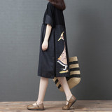 (Трансграничная торговля), японский корсет, рубашка, платье, свободный крой, из хлопка и льна