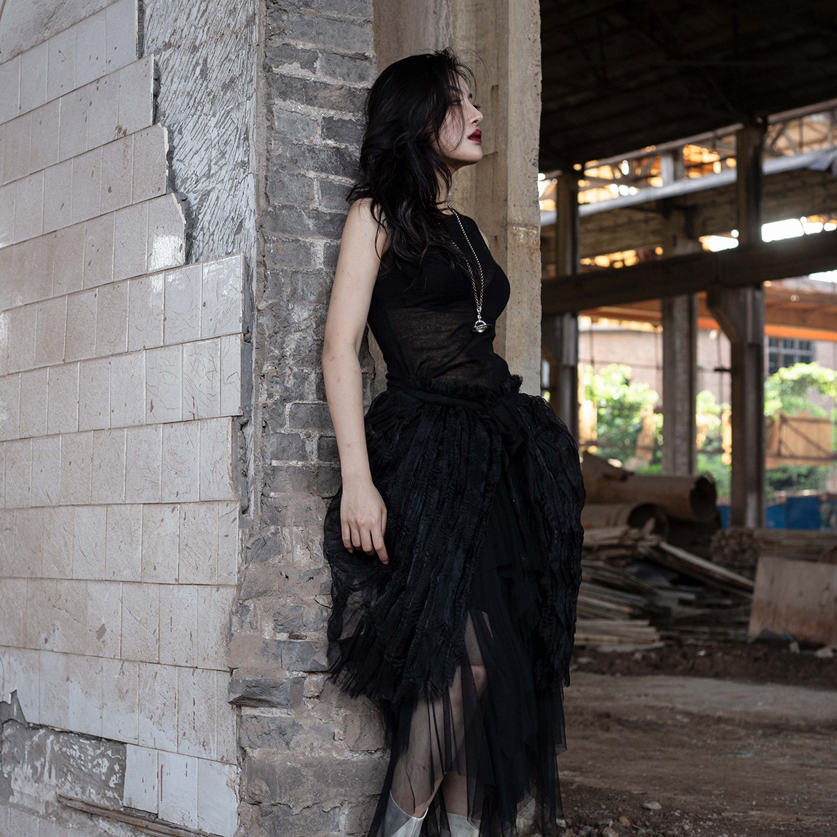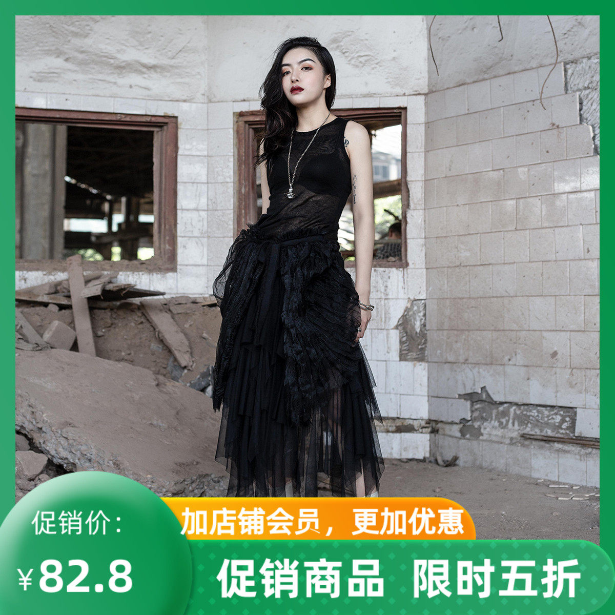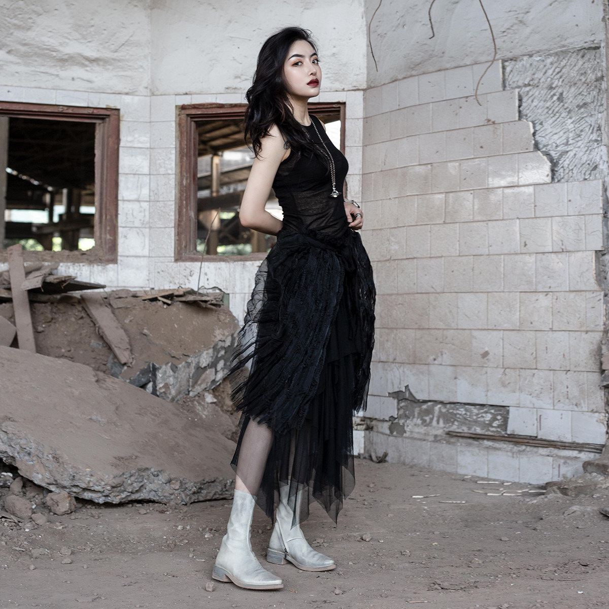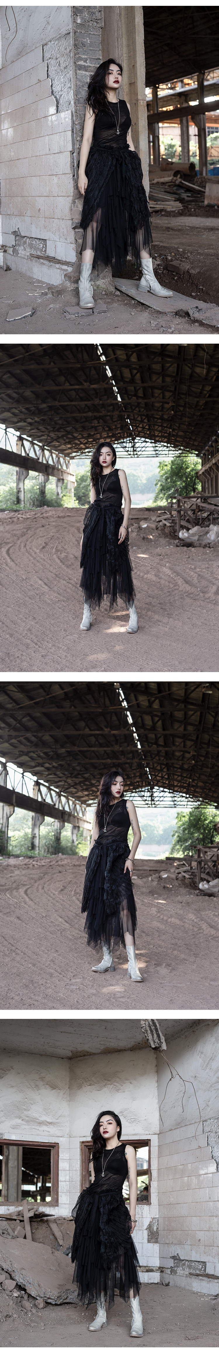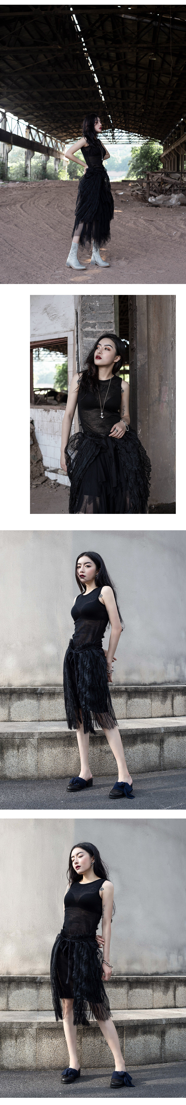 Модель сопоставлена с марлевой юбкой.