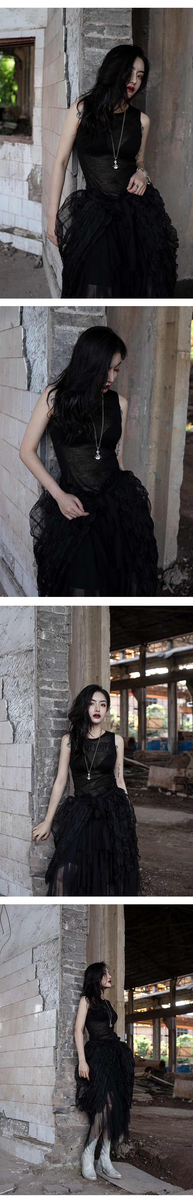 Простая черная диаблон полупрозрачная вязаная марля сексуальное, тонкое платье без рукавов