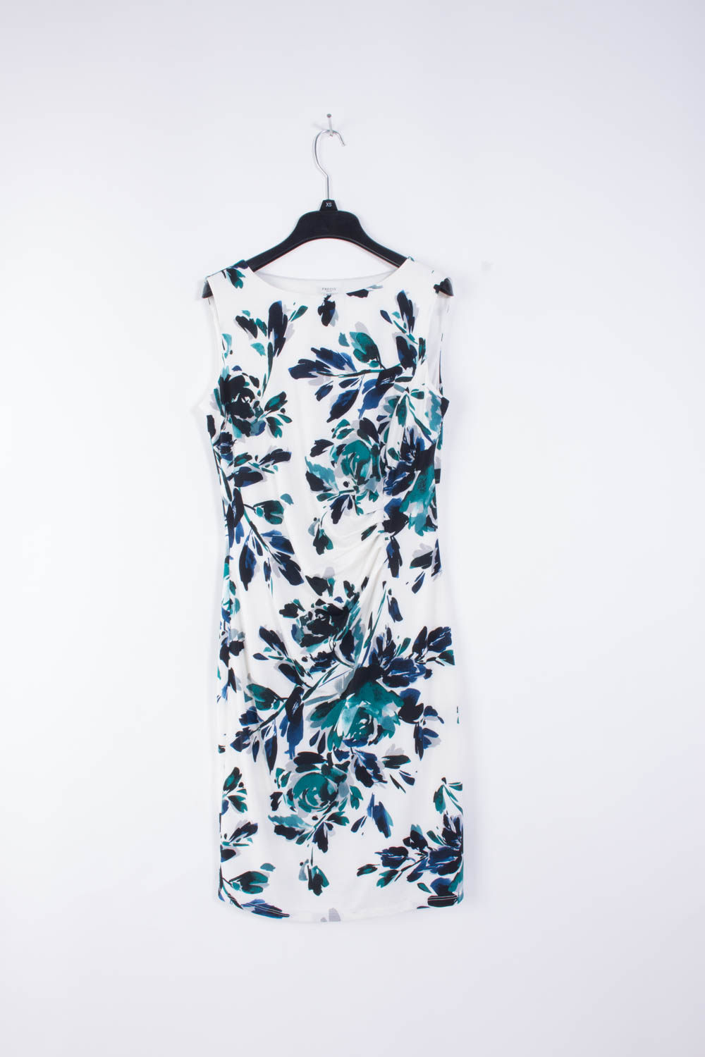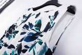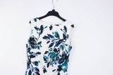 80273 Зрелая женщина интеллектуальная элегантность, покрытие мяса, тонкий круглый вырез, плиссированное белое платье без рукавов