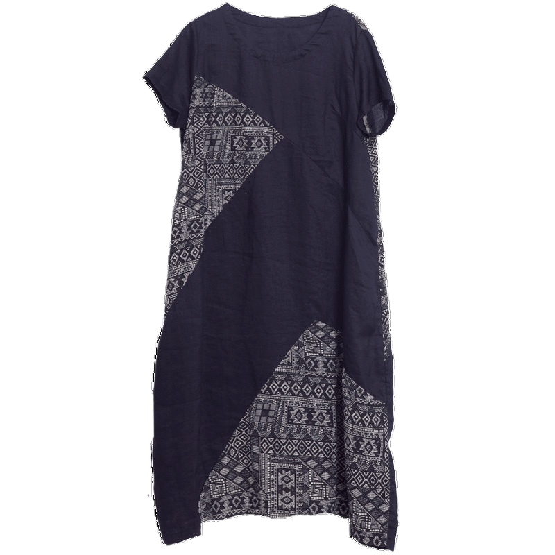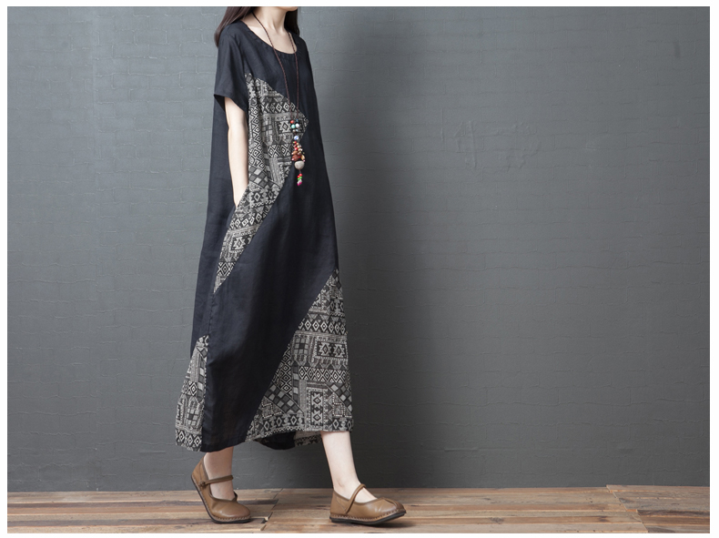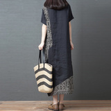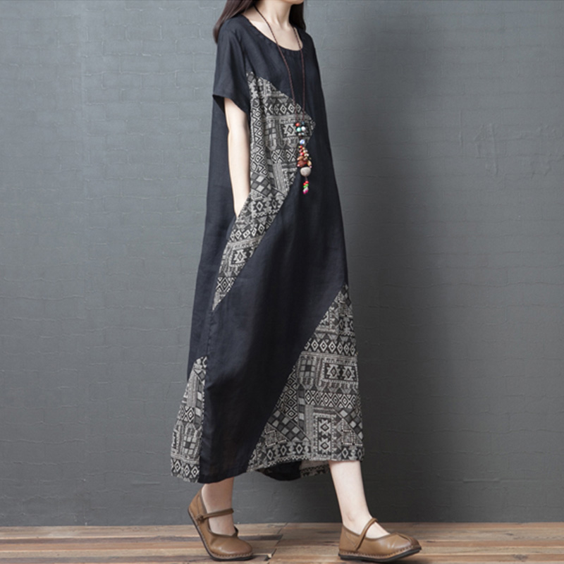 Летнее ретро платье с коротким рукавом, длинная юбка, оверсайз, большой размер, из хлопка и льна