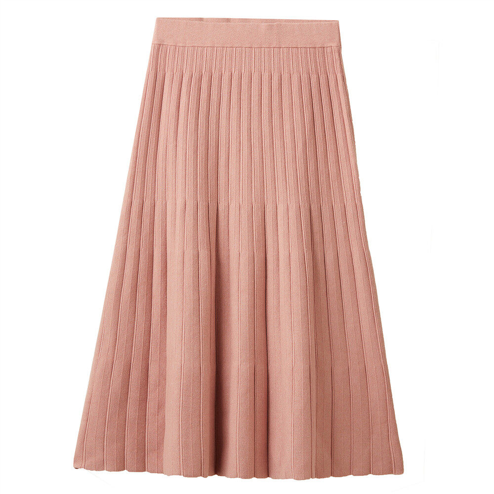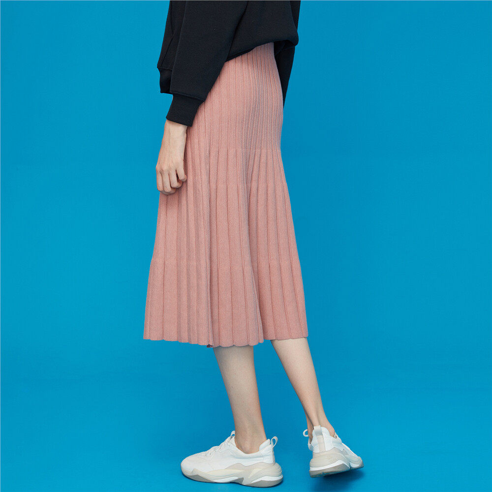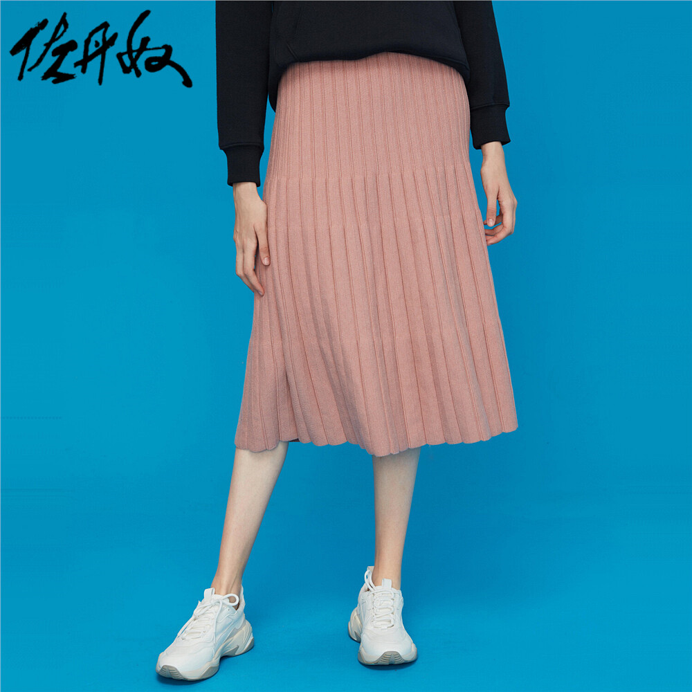 佐丹奴 Розовая длинная юбка в складку, подходит для подростков, эластичная талия, свободный крой, средней длины