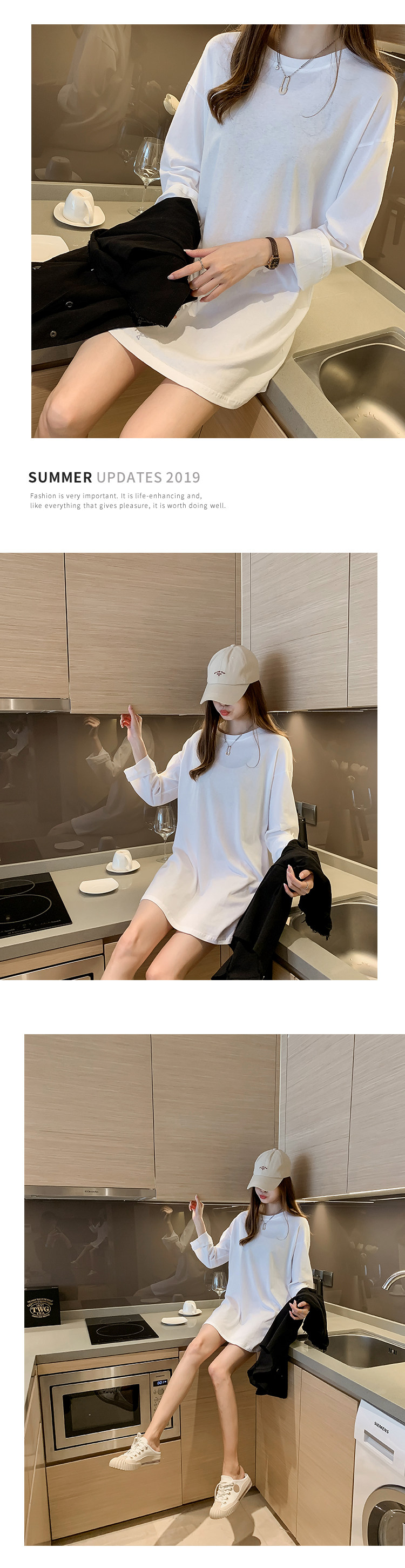 Базовый лонгслив, футболка, платье, летняя белая длинная юбка, подходит для подростков, в корейском стиле, средней длины