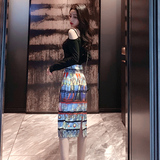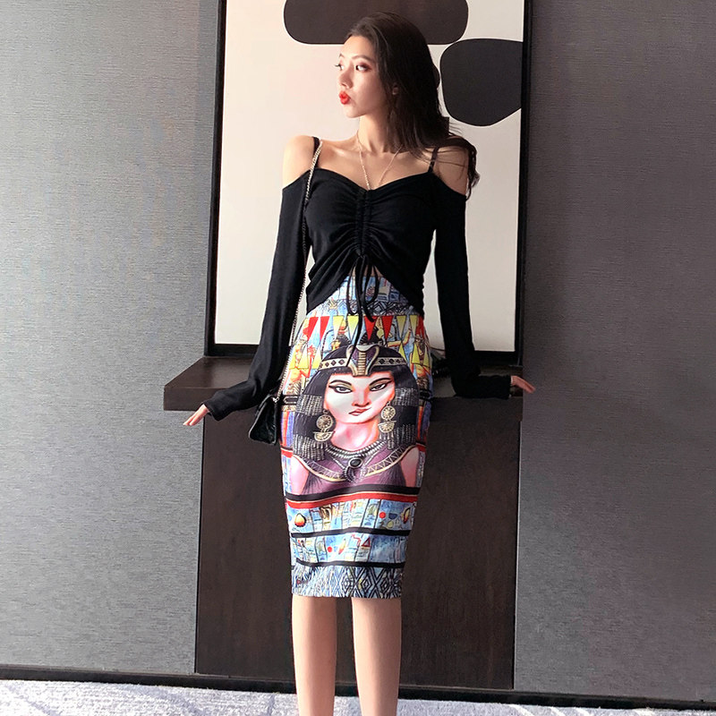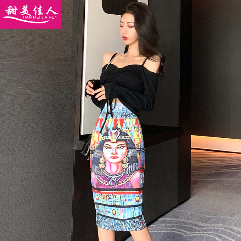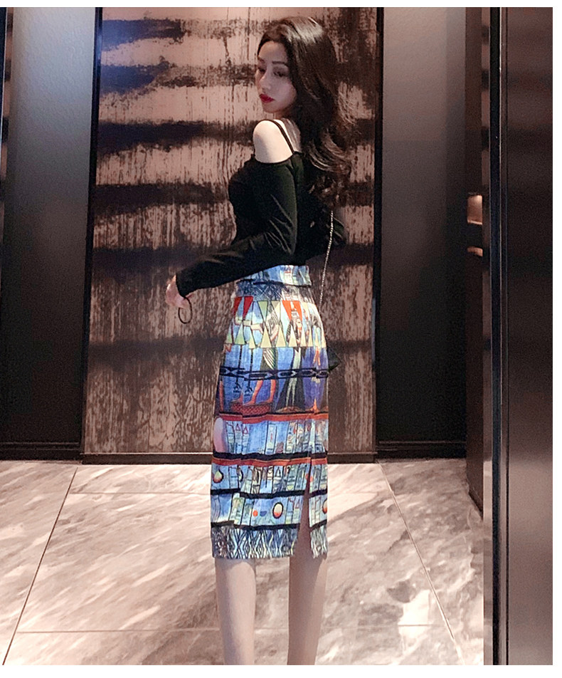 Длинный приталенный сексуальный комплект, с акцентом на бедрах, длина миди, высокая талия