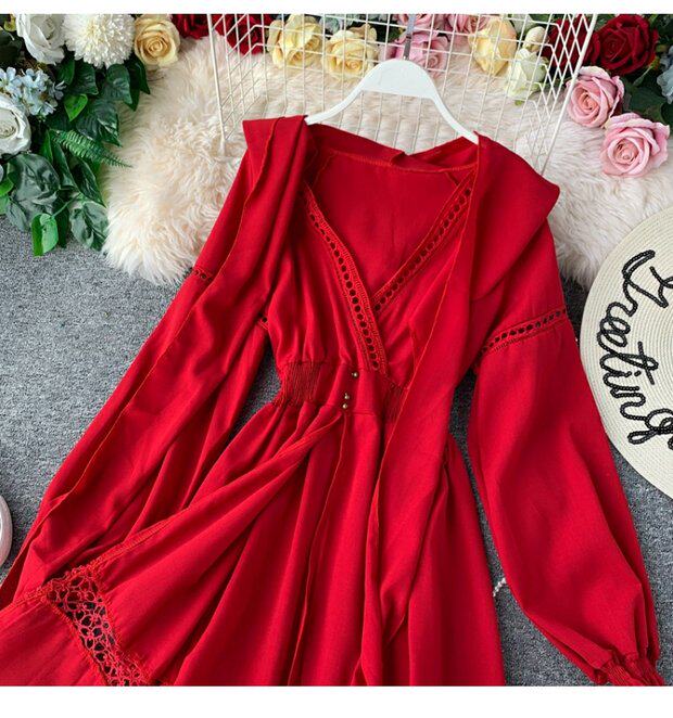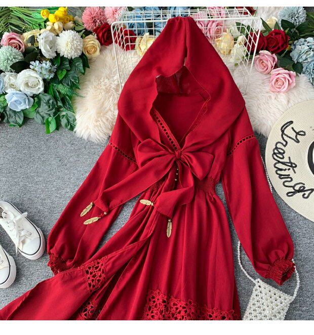 Этническая длинная юбка из провинции Цинхай, платье с капюшоном, этнический стиль, V-образный вырез